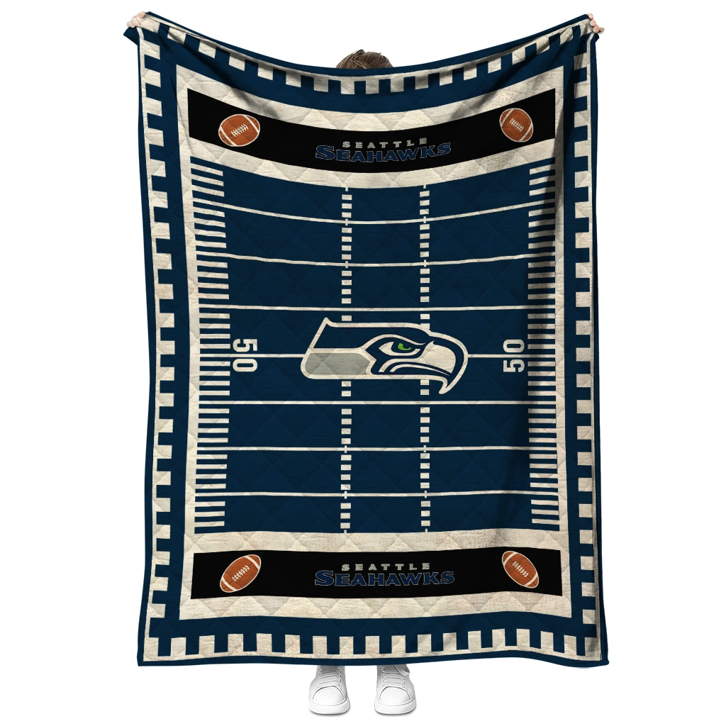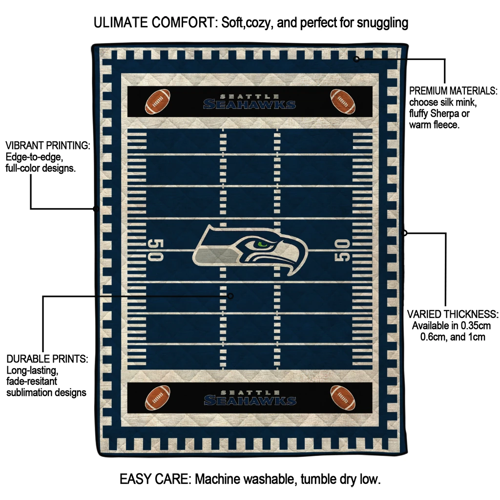 Wrap yourself in warmth and pride with the Seattle Seahawks Mickey Player Blue Quilt Blanket from the Seattle Seahawks Blankets collection at Yes That Blanket. Made from 100% premium quilting-weight polyester blended with a touch of microfiber, this quilt offers a smooth, soft finish you’ll love. Choose between two quilting styles—Stipple or Diagonal—and enjoy the comfort of a cotton-filled layer inside that adds extra coziness for every season. The border is available in classic black or white, giving your design a clean, timeless edge.