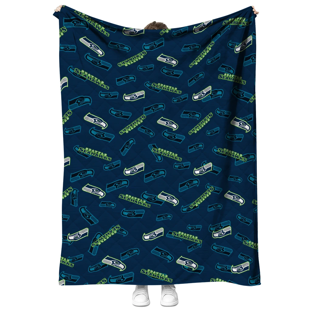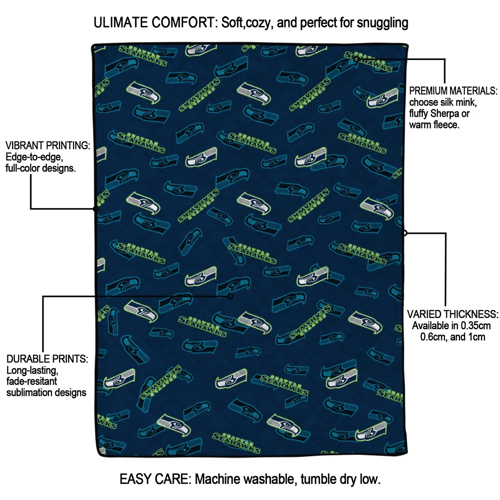 Wrap yourself in warmth and pride with the Seattle Seahawks Solid Classic Blue Quilt Blanket from the Seattle Seahawks Blankets collection at Yes That Blanket. Made from 100% premium quilting-weight polyester blended with a touch of microfiber, this quilt offers a smooth, soft finish you’ll love. Choose between two quilting styles—Stipple or Diagonal—and enjoy the comfort of a cotton-filled layer inside that adds extra coziness for every season. The border is available in classic black or white, giving your design a clean, timeless edge.