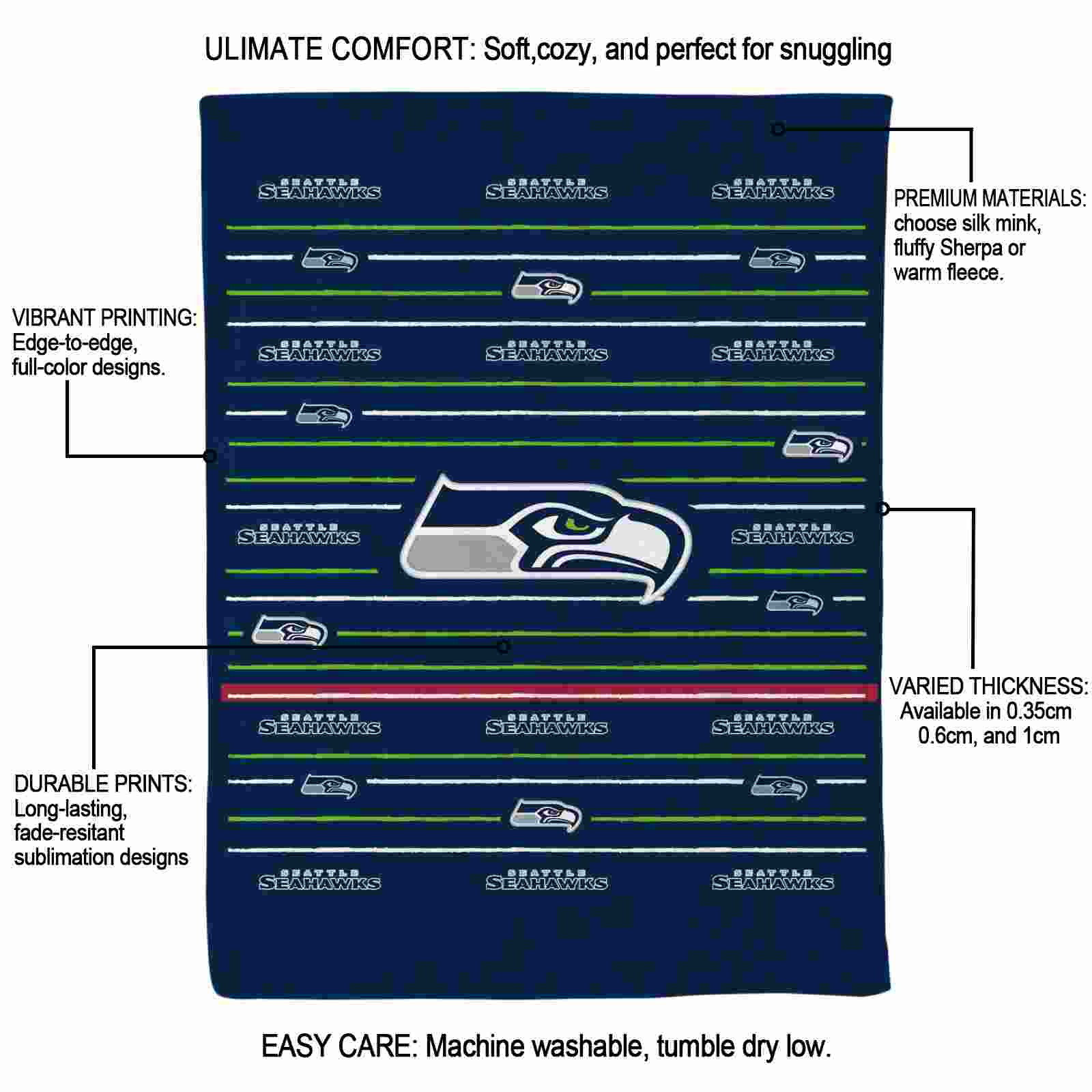 Without a doubt, the Seattle Seahawks Striped Pattern Blue Blanket from Seattle Seahawks Blankets collection is offering true fans a chance to showcase passion in a cool way. Personalize it with your favorite team’s logo or a meaningful name to make it uniquely yours. Isn’t that great? The full-color print ensures vibrant, edge-to-edge designs, bringing your sports enthusiasm to life!