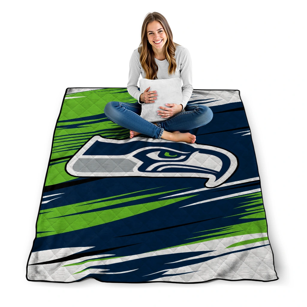 Seattle Seahawks Wild Lines Blue White Quilt Blanket