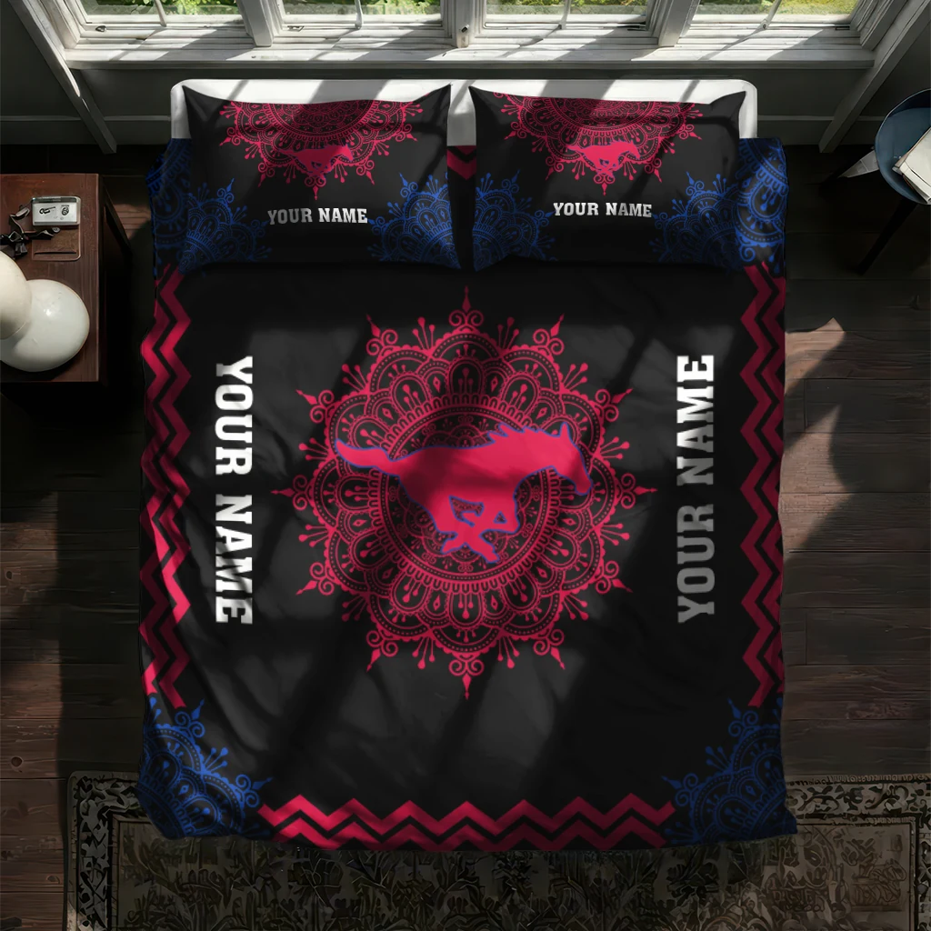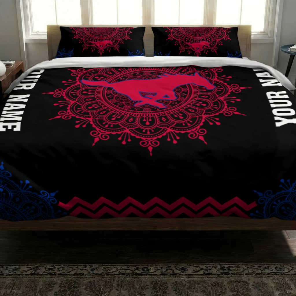 SMU Mustangs Bedding Set – Customized Mandala Lacework Black Red