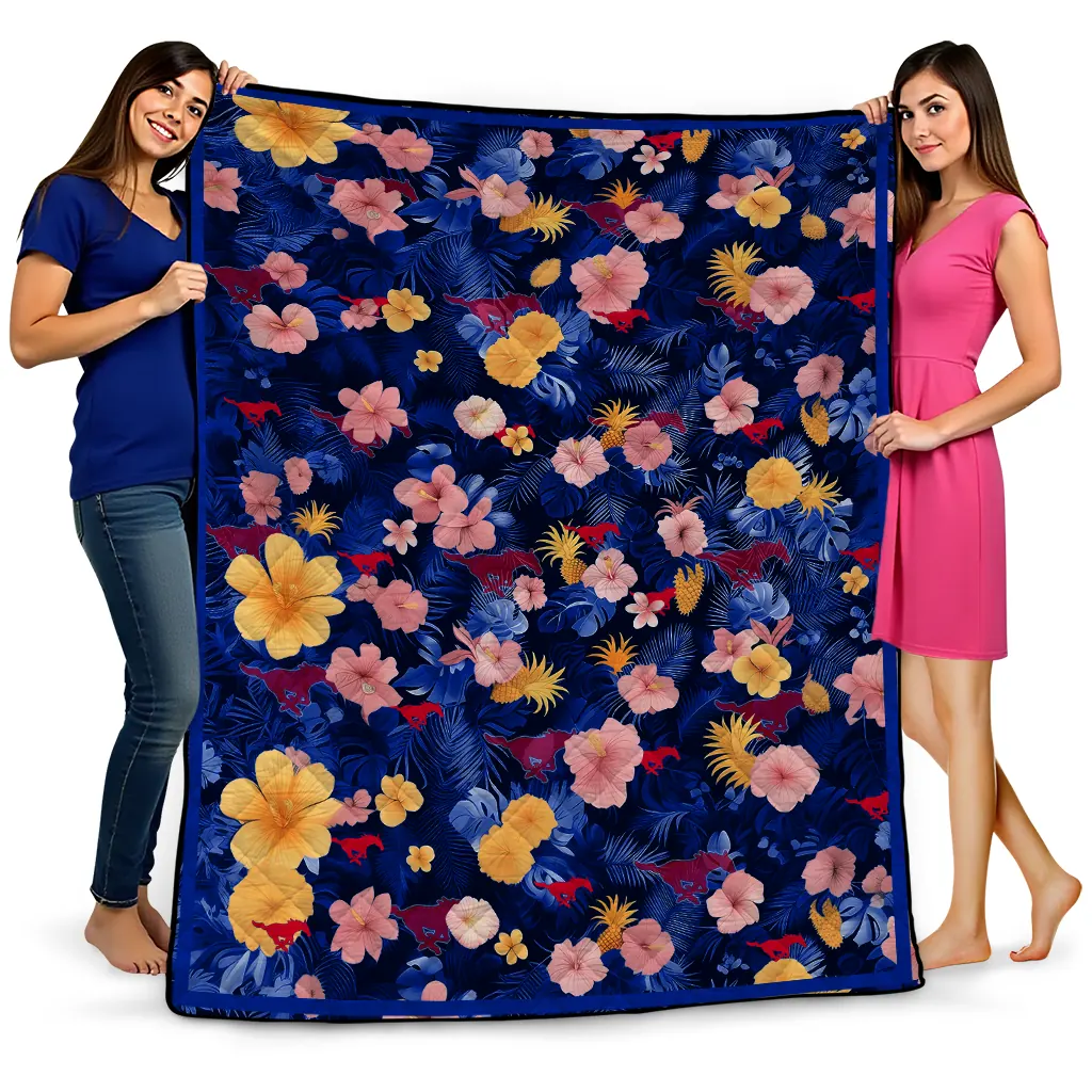 SMU Mustangs Hibiscus Foliage Blue Quilt Blanket