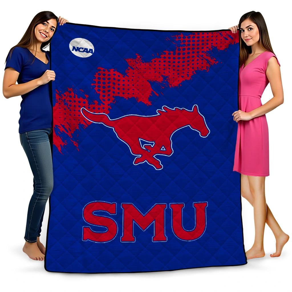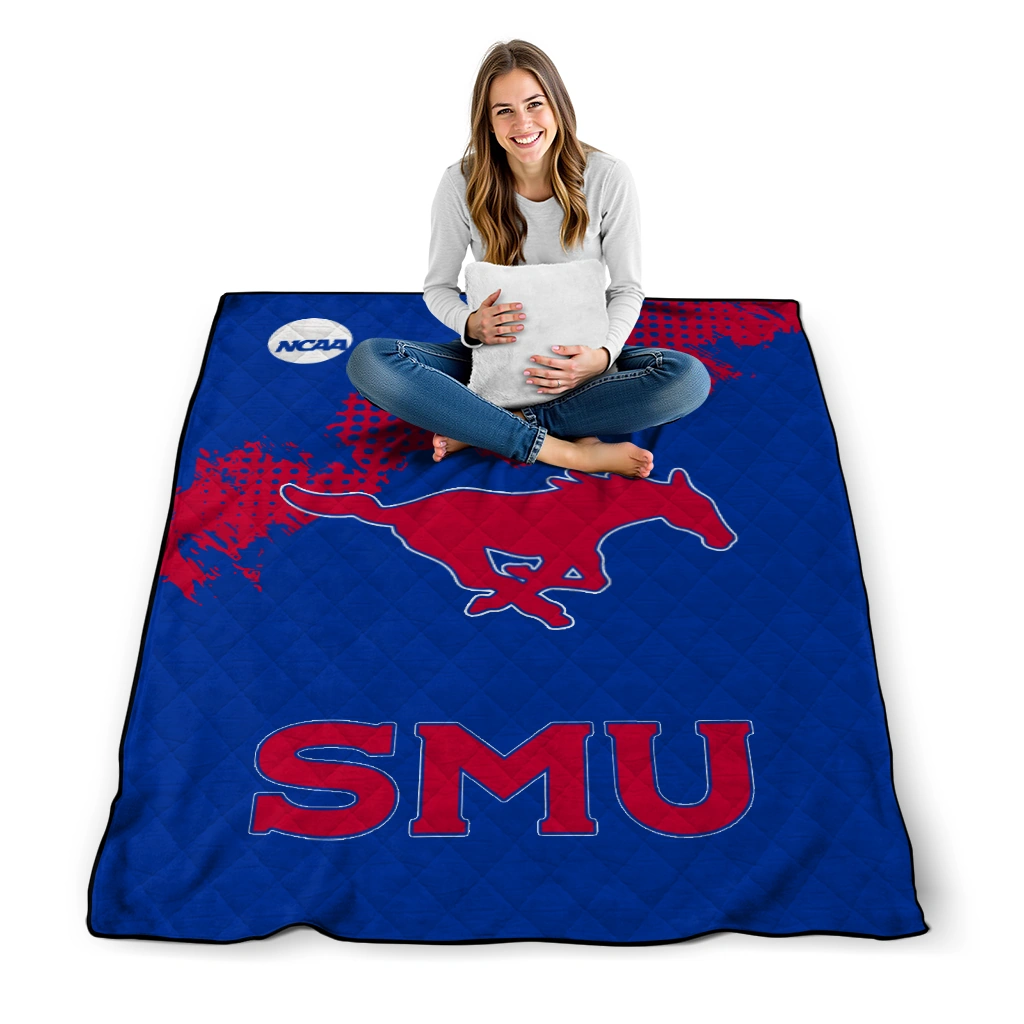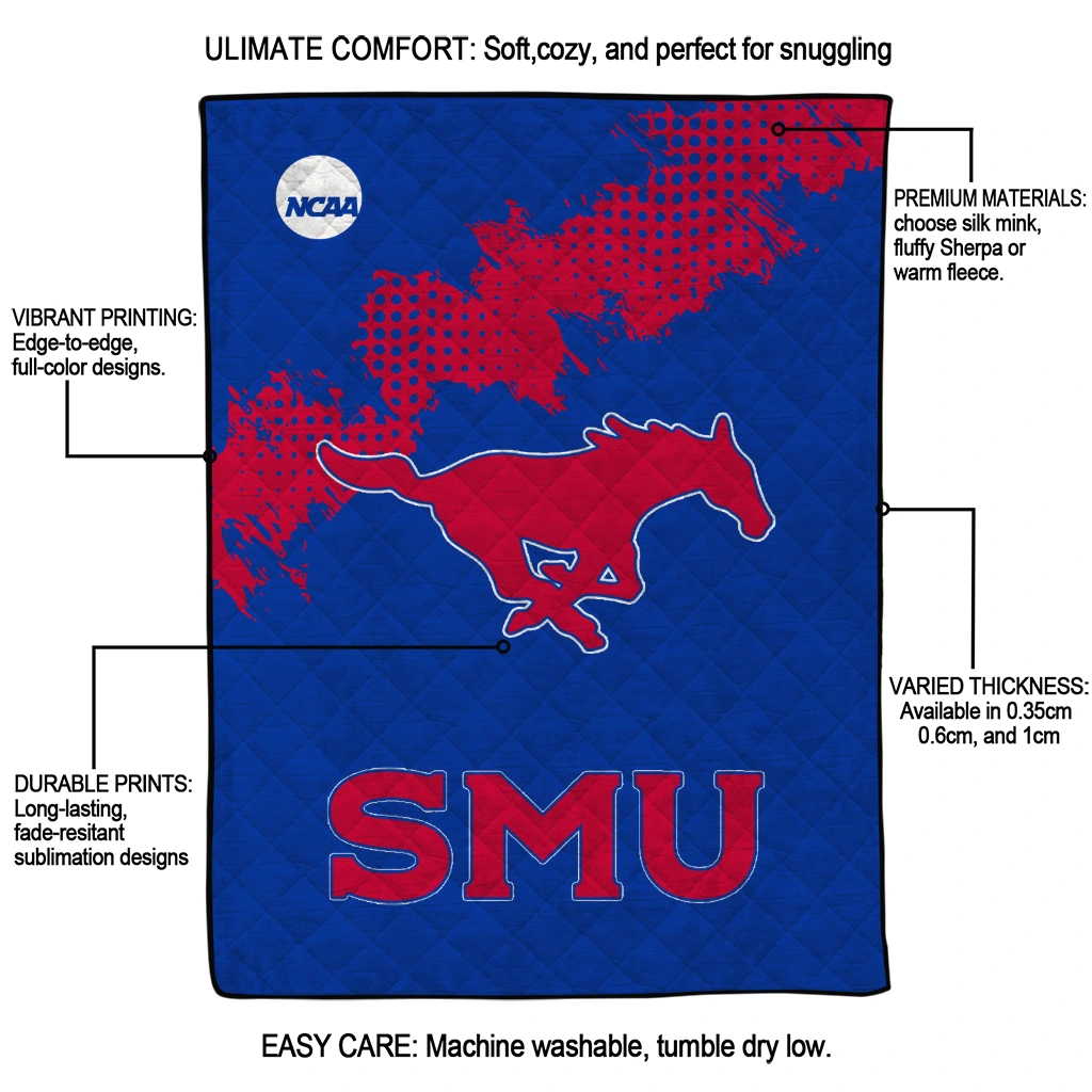SMU Mustangs Paint Trail Blue Quilt Blanket