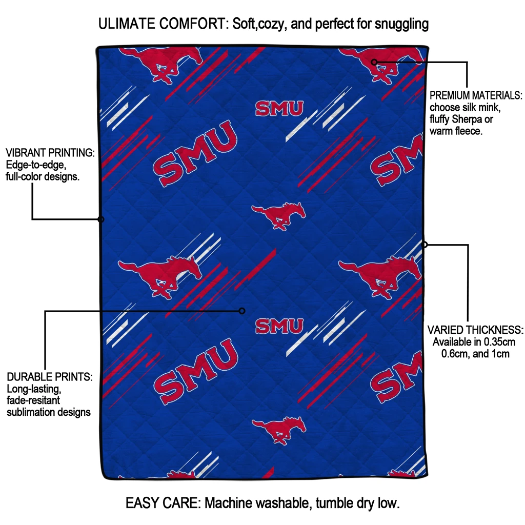The SMU Mustangs Sketch Lines Blue Quilt Blanket is more than a blanket—it’s everyday comfort, thoughtfully made. Crafted from premium quilting fabric with a soft microfiber touch, it offers a smooth hand-feel and lasting coziness. Layered quilting with a cotton-filled core provides adaptable warmth across seasons while maintaining a clean, tailored look on your bed or sofa.
