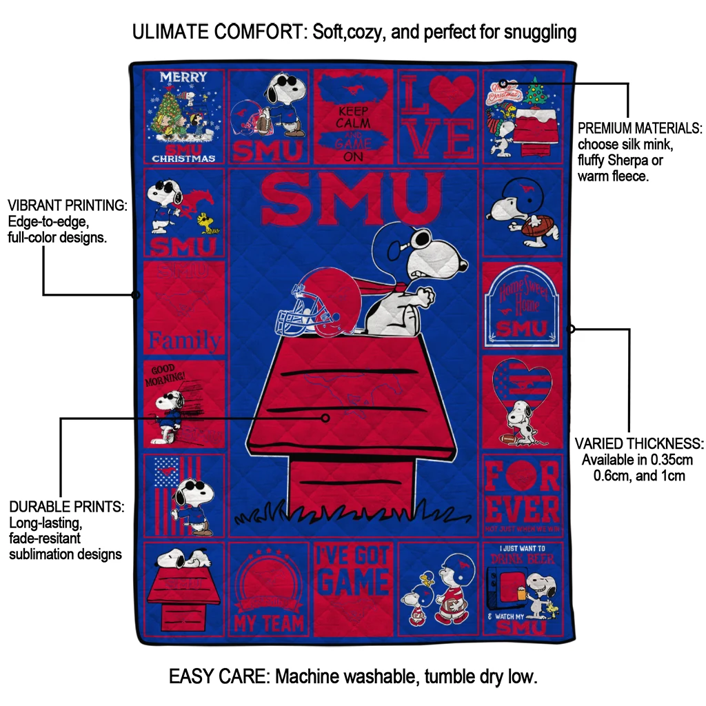 The SMU Mustangs Snoopy Love Blue Quilt Blanket is more than a blanket—it’s everyday comfort, thoughtfully made. Crafted from premium quilting fabric with a soft microfiber touch, it offers a smooth hand-feel and lasting coziness. Layered quilting with a cotton-filled core provides adaptable warmth across seasons while maintaining a clean, tailored look on your bed or sofa.