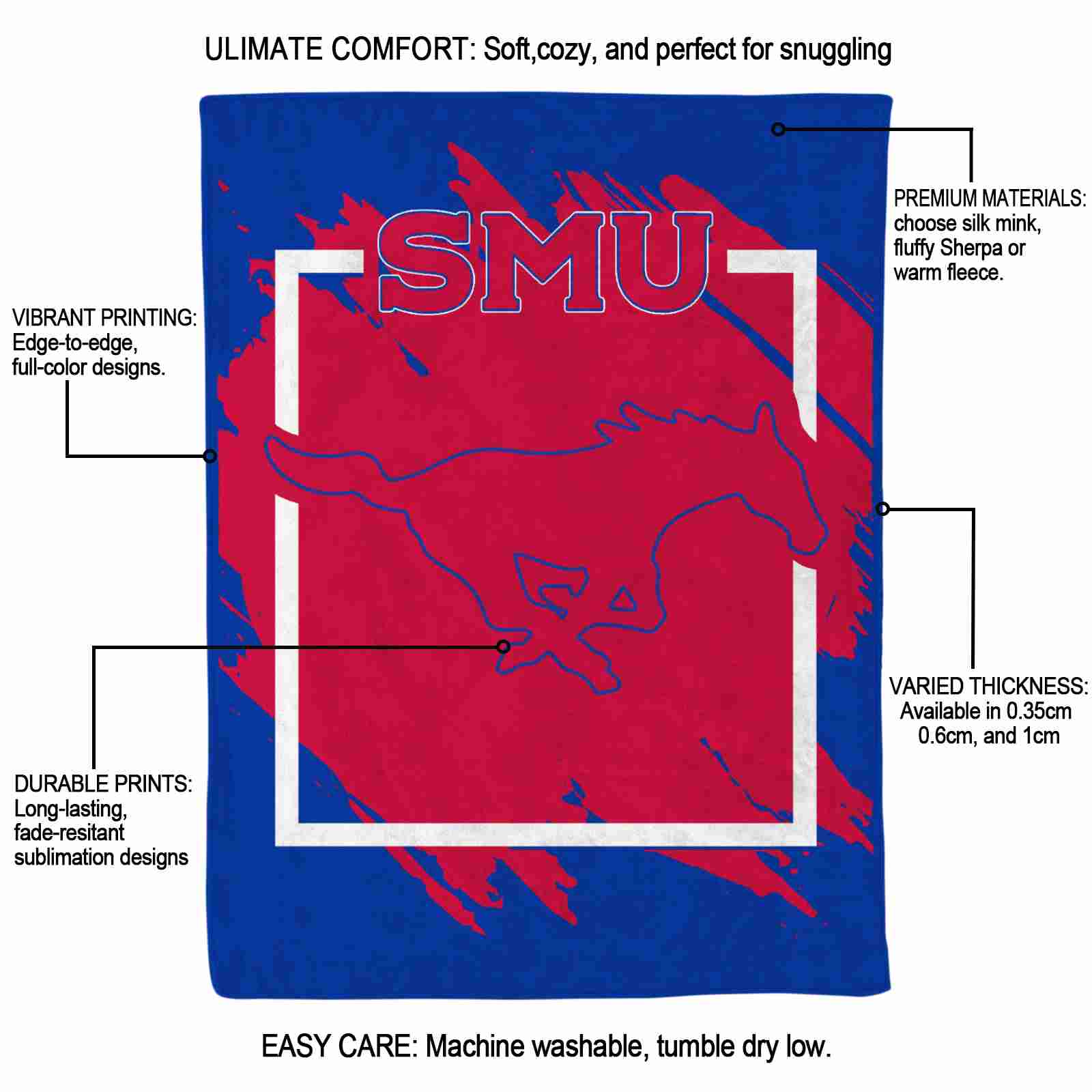 Without a doubt, the SMU Mustangs Splatter Effect Blue Blanket from SMU Mustangs Blankets collection is offering true fans a chance to showcase passion in a cool way. Personalize it with your favorite team’s logo or a meaningful name to make it uniquely yours. Isn’t that great? The full-color print ensures vibrant, edge-to-edge designs, bringing your sports enthusiasm to life!