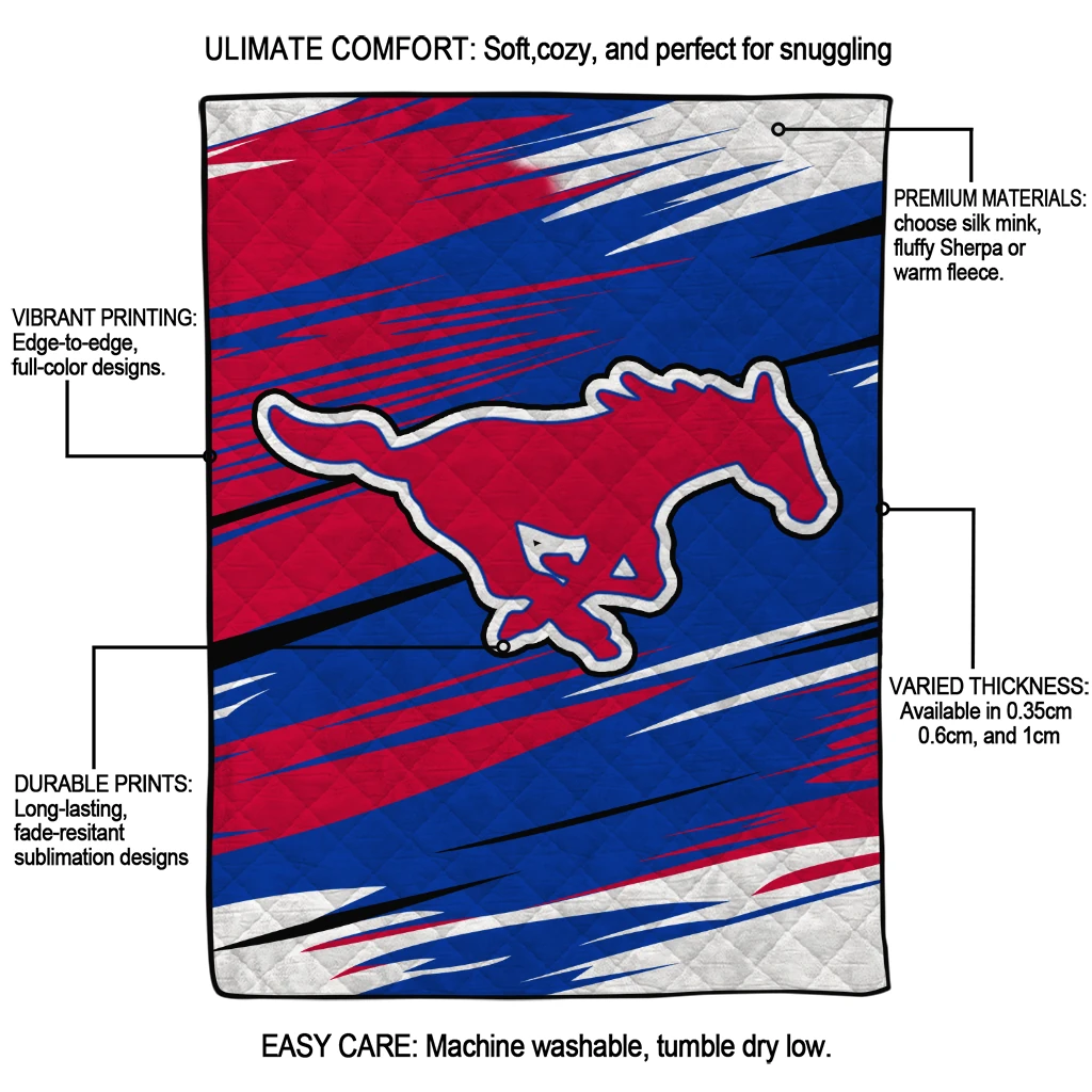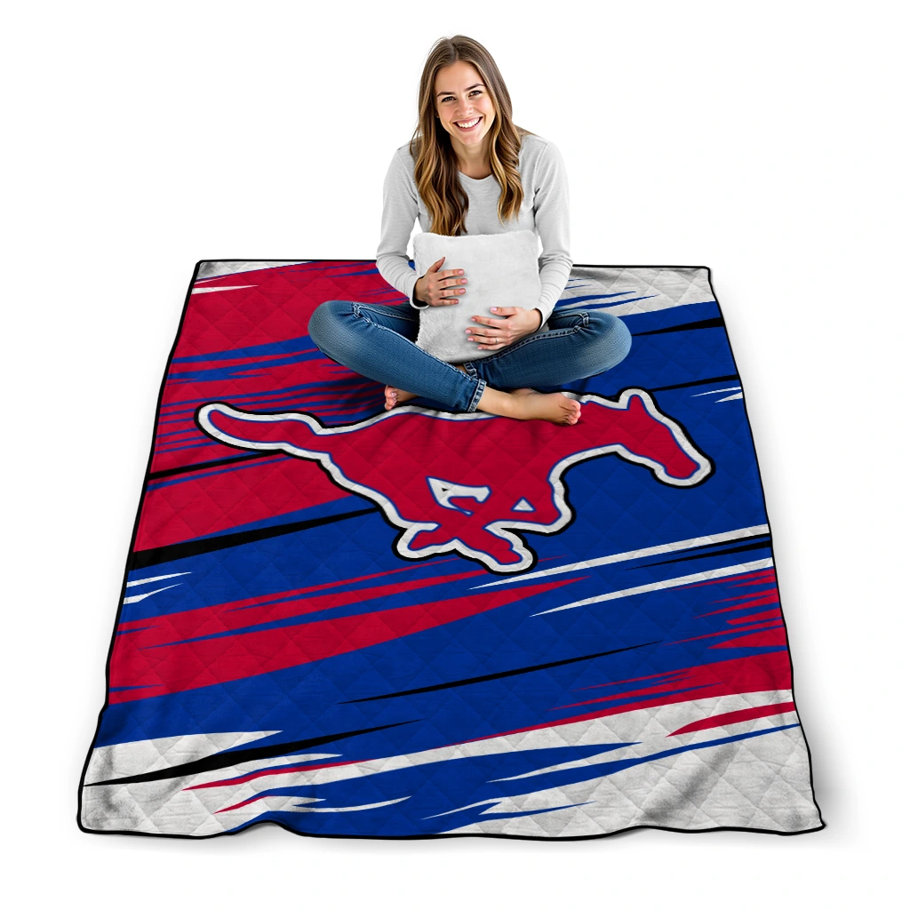 The SMU Mustangs Wild Lines Blue White Quilt Blanket is more than a blanket—it’s everyday comfort, thoughtfully made. Crafted from premium quilting fabric with a soft microfiber touch, it offers a smooth hand-feel and lasting coziness. Layered quilting with a cotton-filled core provides adaptable warmth across seasons while maintaining a clean, tailored look on your bed or sofa.