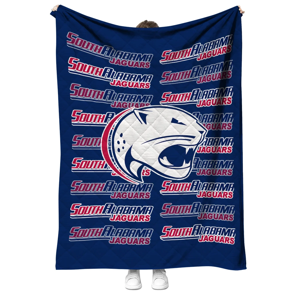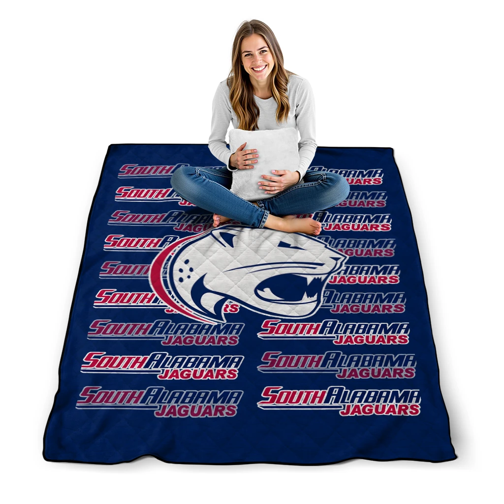 Wrap yourself in warmth and pride with the South Alabama Jaguars Bold Red Blue Quilt Blanket from the South Alabama Jaguars Blankets collection at Yes That Blanket. Made from 100% premium quilting-weight polyester blended with a touch of microfiber, this quilt offers a smooth, soft finish you’ll love. Choose between two quilting styles—Stipple or Diagonal—and enjoy the comfort of a cotton-filled layer inside that adds extra coziness for every season. The border is available in classic black or white, giving your design a clean, timeless edge.