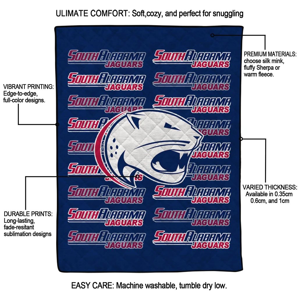 The South Alabama Jaguars Bold Red Blue Quilt Blanket is more than a blanket—it’s everyday comfort, thoughtfully made. Crafted from premium quilting fabric with a soft microfiber touch, it offers a smooth hand-feel and lasting coziness. Layered quilting with a cotton-filled core provides adaptable warmth across seasons while maintaining a clean, tailored look on your bed or sofa.