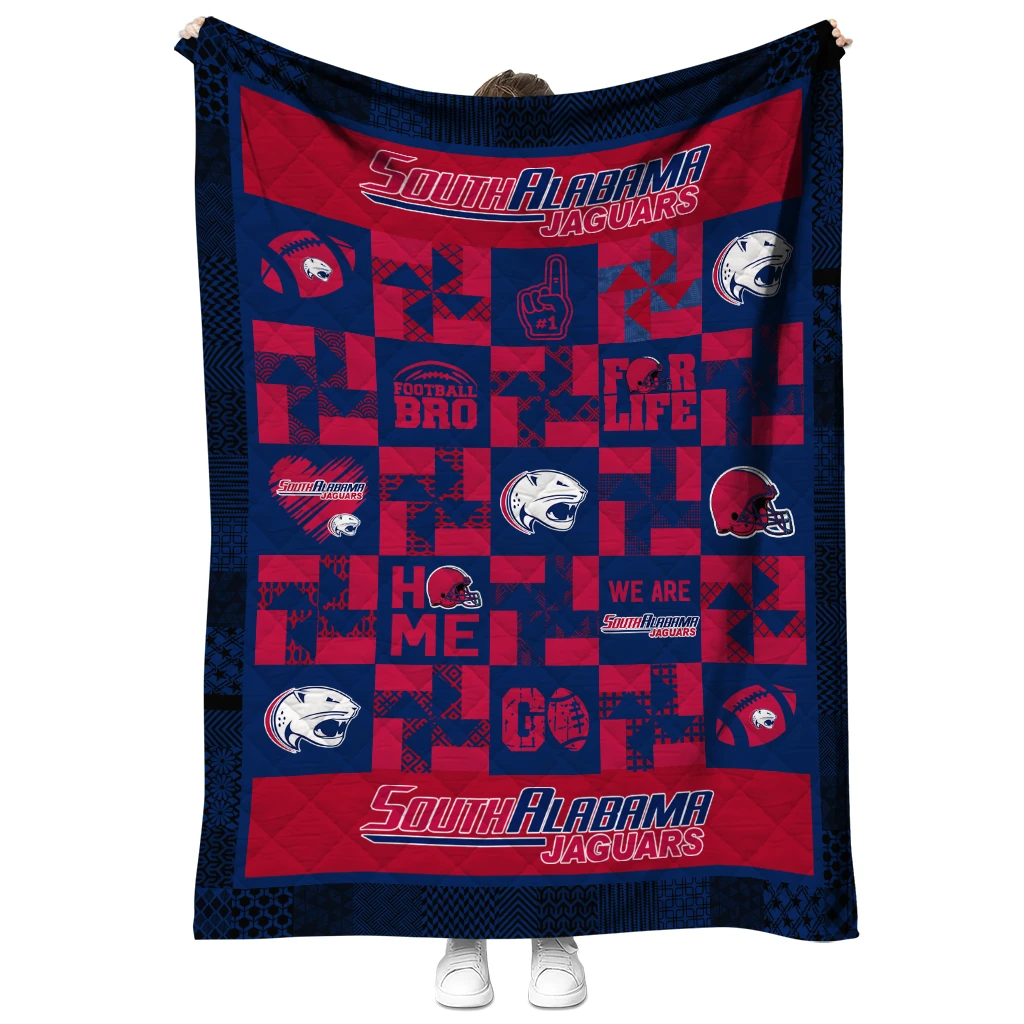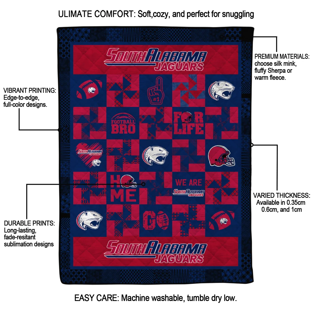 The South Alabama Jaguars Helmet Heart Blue Quilt Blanket is more than a blanket—it’s everyday comfort, thoughtfully made. Crafted from premium quilting fabric with a soft microfiber touch, it offers a smooth hand-feel and lasting coziness. Layered quilting with a cotton-filled core provides adaptable warmth across seasons while maintaining a clean, tailored look on your bed or sofa.