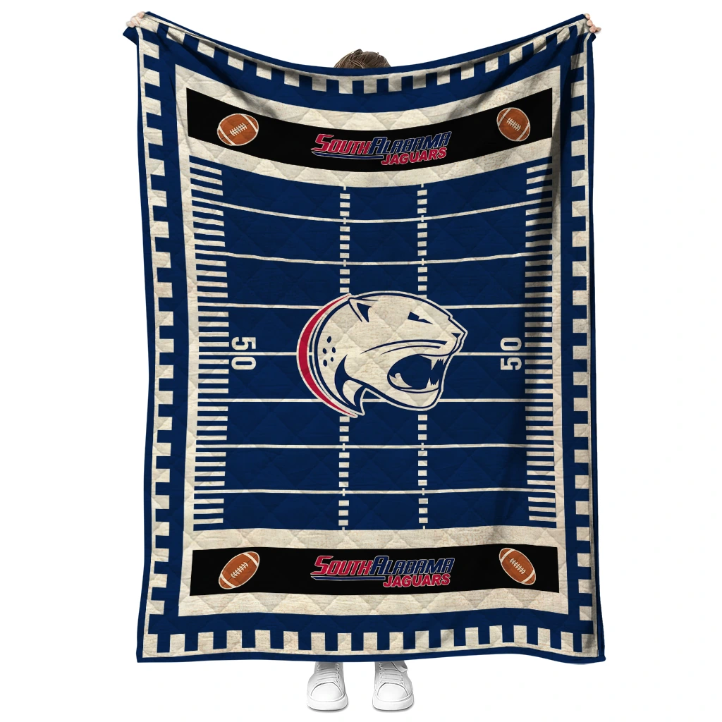Wrap yourself in warmth and pride with the South Alabama Jaguars Mickey Player Blue Quilt Blanket from the South Alabama Jaguars Blankets collection at Yes That Blanket. Made from 100% premium quilting-weight polyester blended with a touch of microfiber, this quilt offers a smooth, soft finish you’ll love. Choose between two quilting styles—Stipple or Diagonal—and enjoy the comfort of a cotton-filled layer inside that adds extra coziness for every season. The border is available in classic black or white, giving your design a clean, timeless edge.
