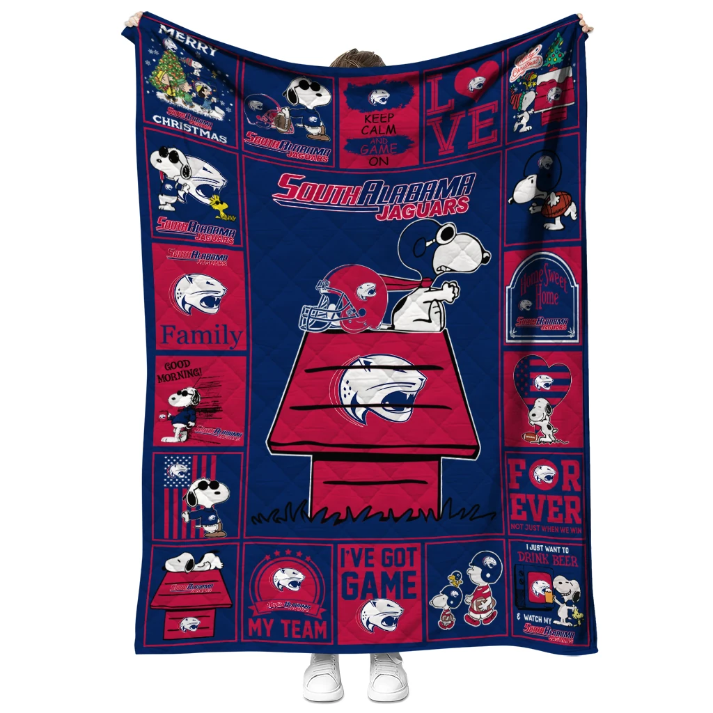 The South Alabama Jaguars Snoopy Love Blue Quilt Blanket is more than a blanket—it’s everyday comfort, thoughtfully made. Crafted from premium quilting fabric with a soft microfiber touch, it offers a smooth hand-feel and lasting coziness. Layered quilting with a cotton-filled core provides adaptable warmth across seasons while maintaining a clean, tailored look on your bed or sofa.