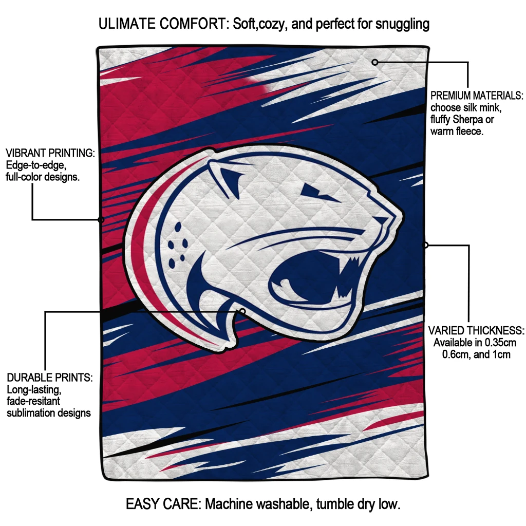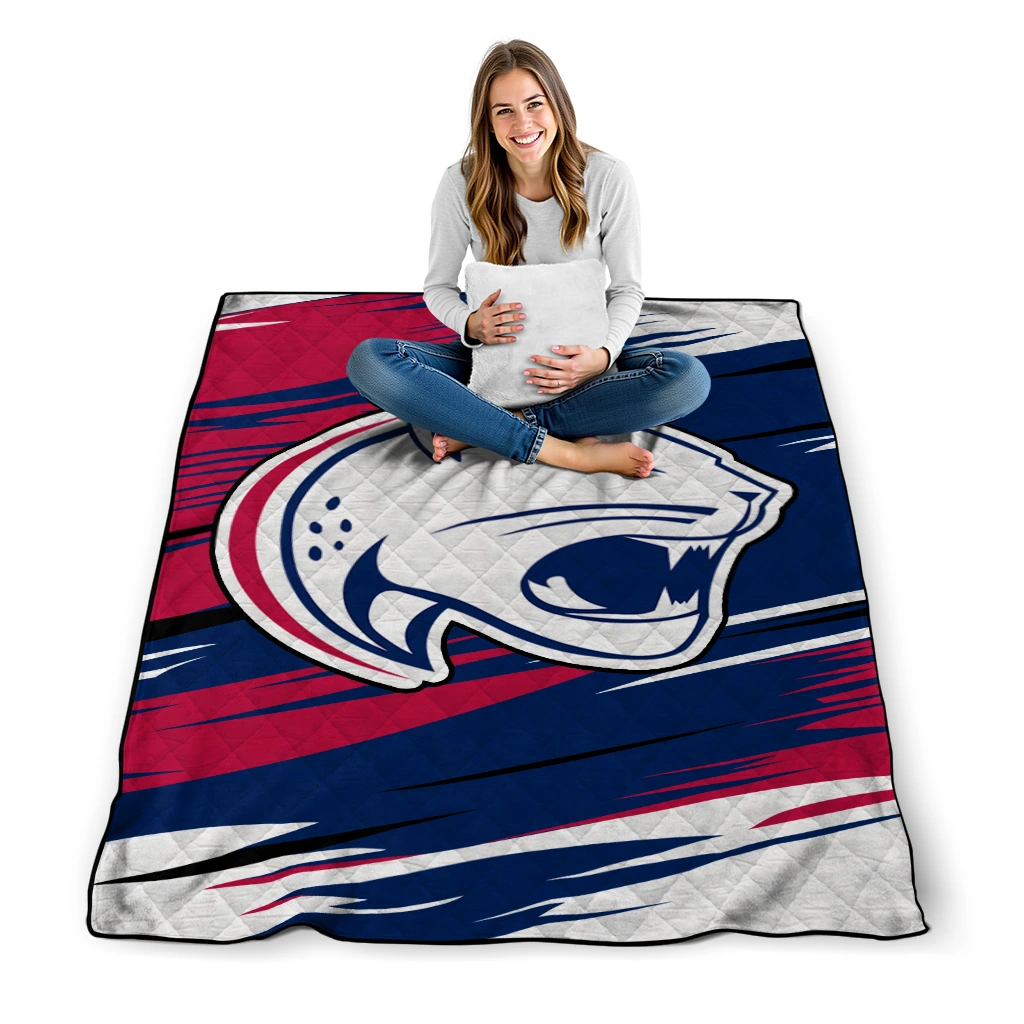 Wrap yourself in warmth and pride with the South Alabama Jaguars Wild Lines Blue White Quilt Blanket from the South Alabama Jaguars Blankets collection at Yes That Blanket. Made from 100% premium quilting-weight polyester blended with a touch of microfiber, this quilt offers a smooth, soft finish you’ll love. Choose between two quilting styles—Stipple or Diagonal—and enjoy the comfort of a cotton-filled layer inside that adds extra coziness for every season. The border is available in classic black or white, giving your design a clean, timeless edge.