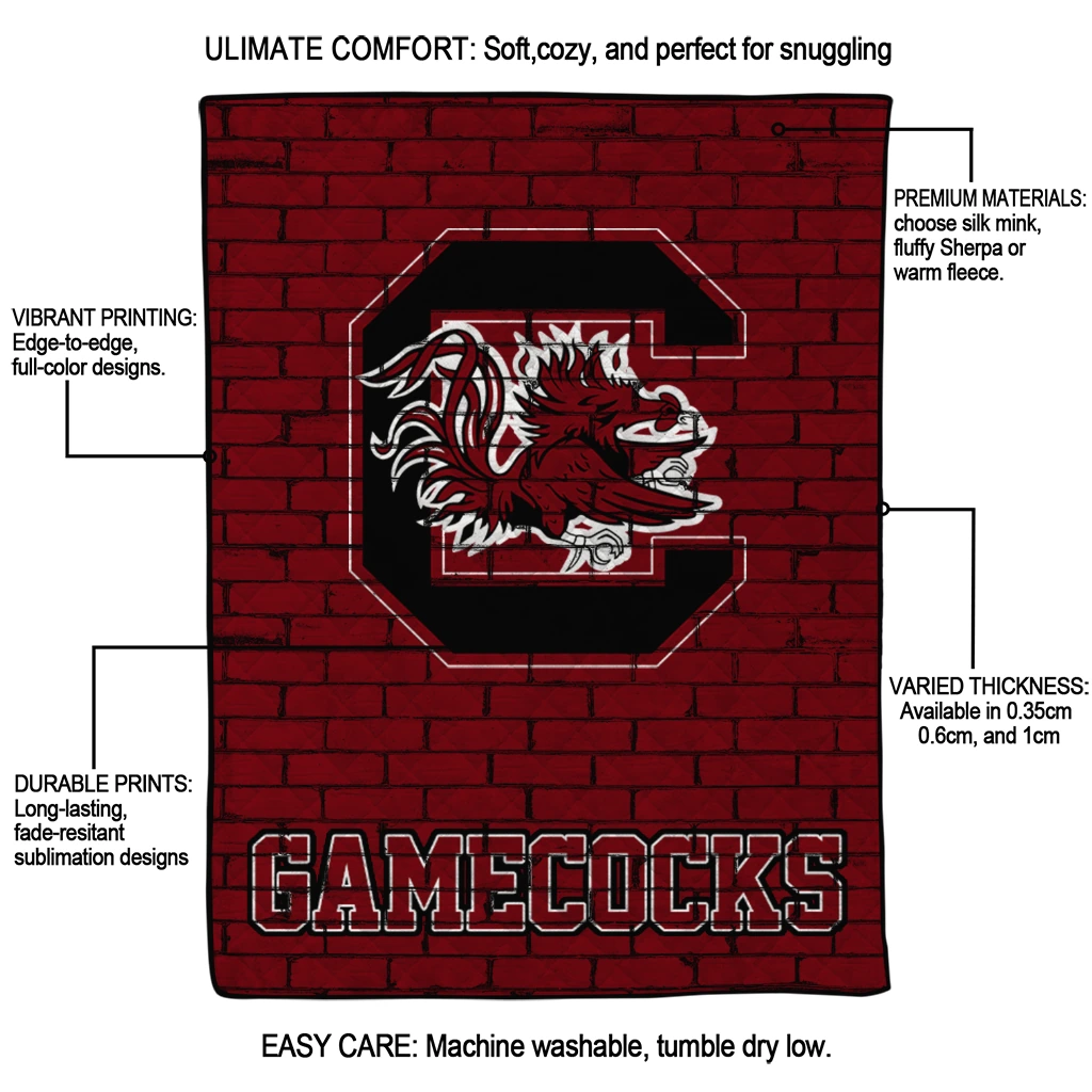 South Carolina Gamecocks Brick Grid Garnet Quilt Blanket