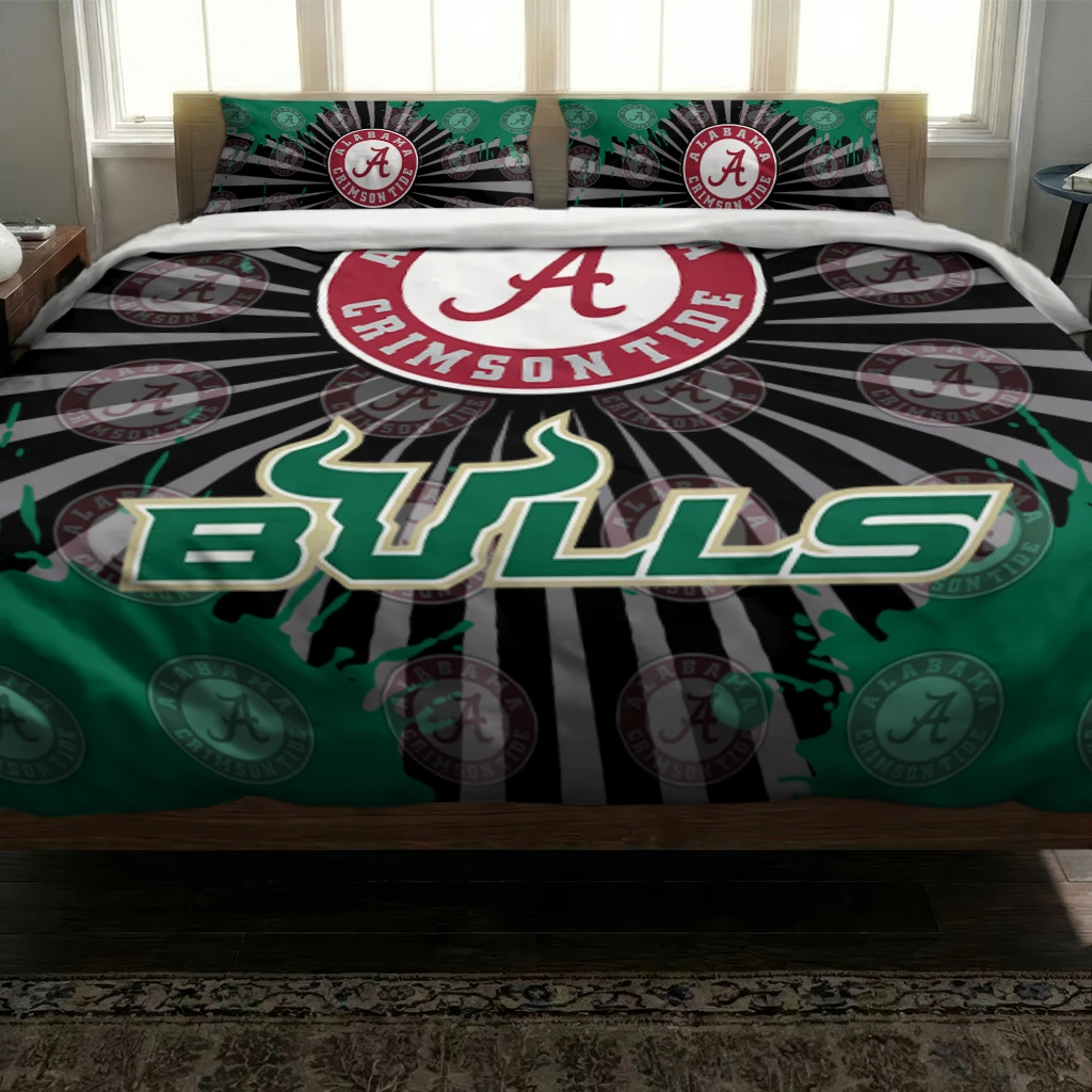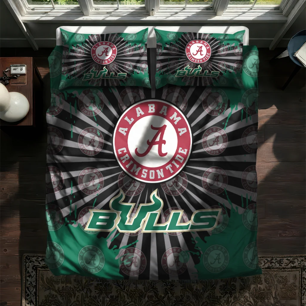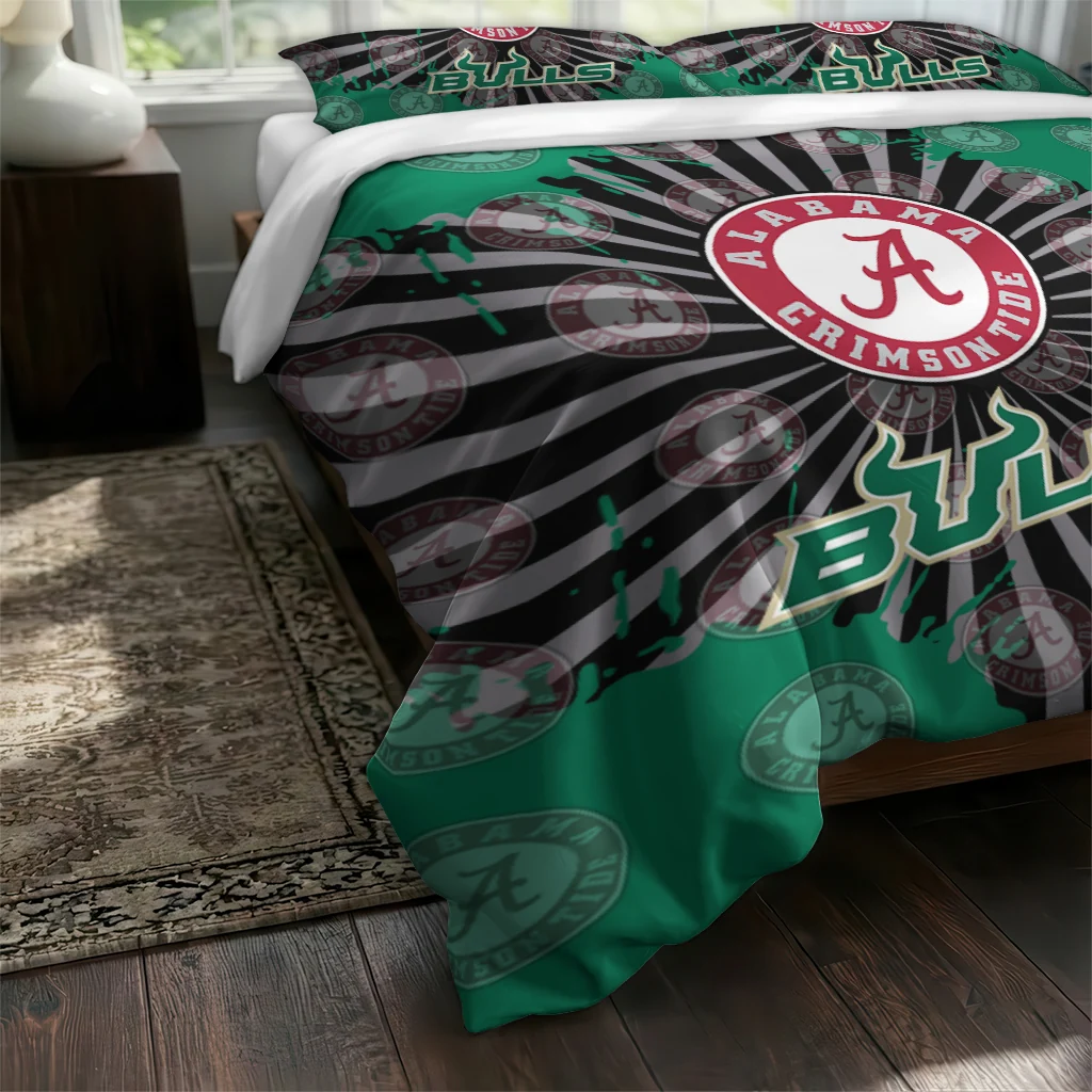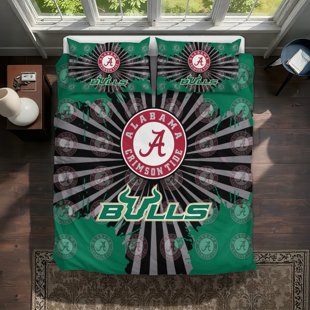 South Florida Bulls Bedding Set – Sunburst Splatter Green Black