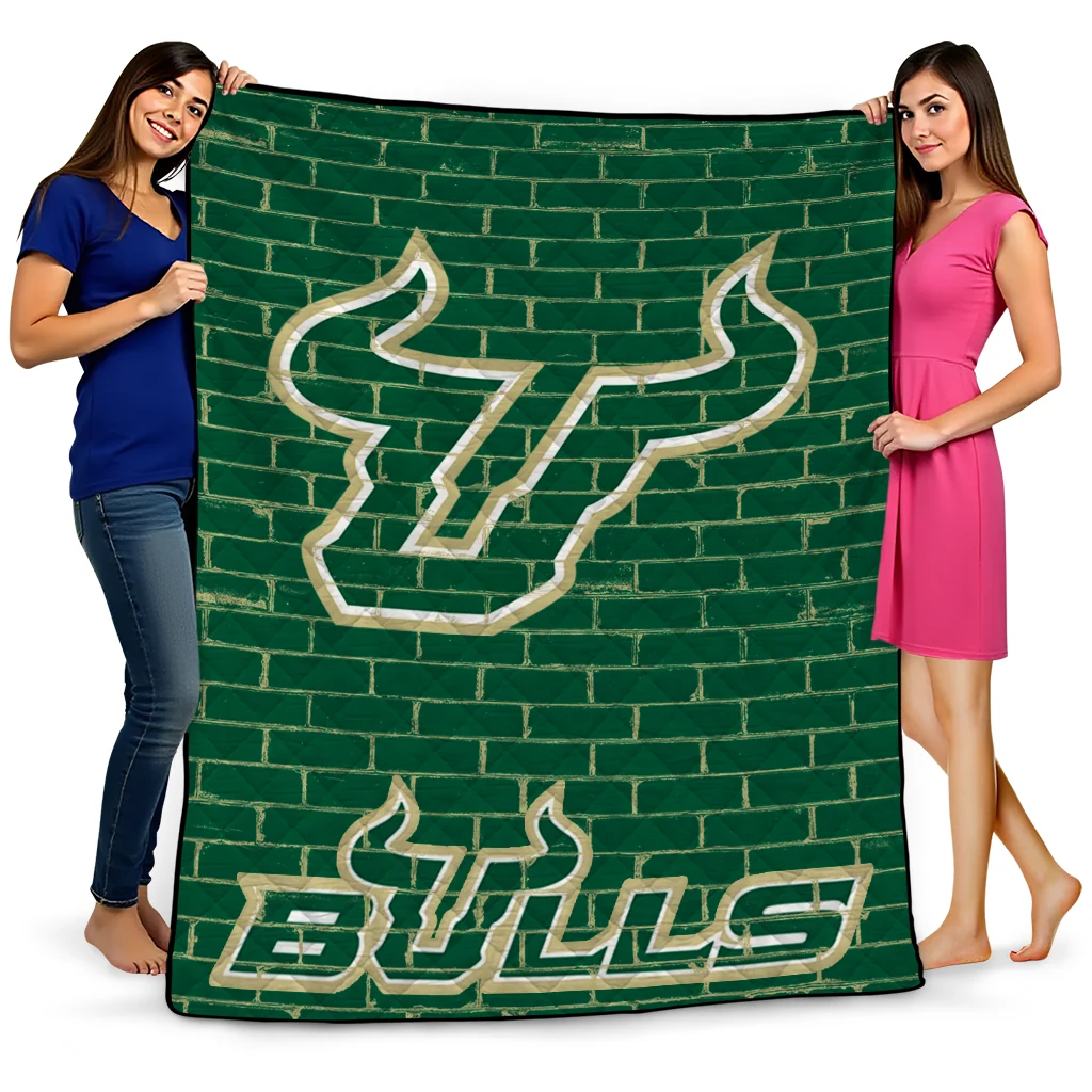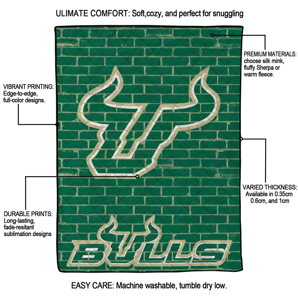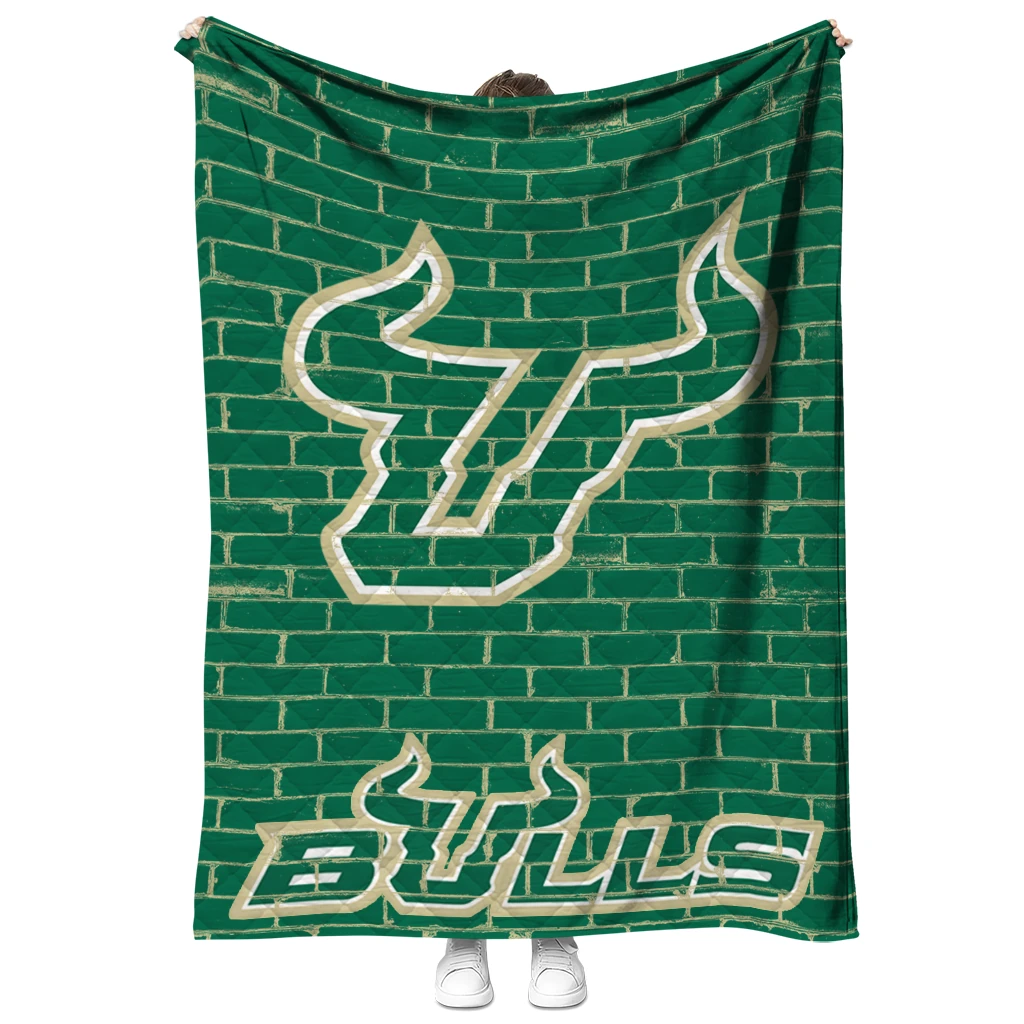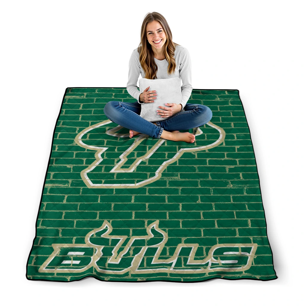Wrap yourself in warmth and pride with the South Florida Bulls Brick Grid Green Quilt Blanket from the South Florida Bulls Blankets collection at Yes That Blanket. Made from 100% premium quilting-weight polyester blended with a touch of microfiber, this quilt offers a smooth, soft finish you’ll love. Choose between two quilting styles—Stipple or Diagonal—and enjoy the comfort of a cotton-filled layer inside that adds extra coziness for every season. The border is available in classic black or white, giving your design a clean, timeless edge.