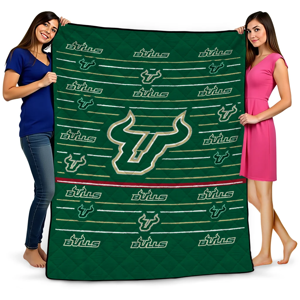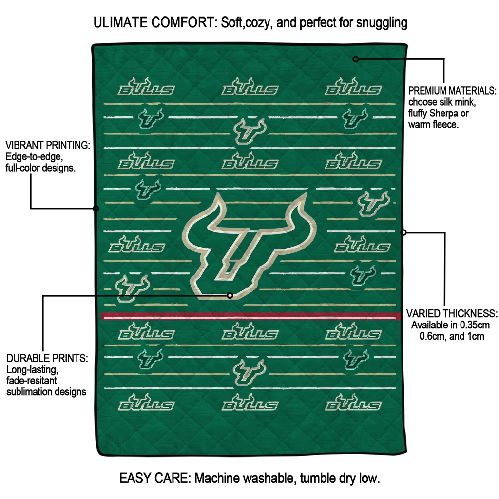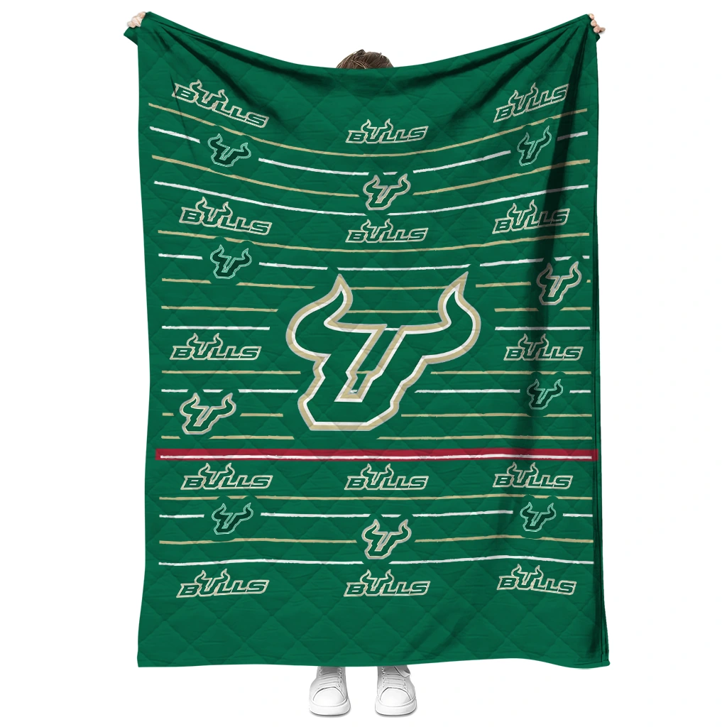 Wrap yourself in warmth and pride with the South Florida Bulls Handdrawn Stripes Green Quilt Blanket from the South Florida Bulls Blankets collection at Yes That Blanket. Made from 100% premium quilting-weight polyester blended with a touch of microfiber, this quilt offers a smooth, soft finish you’ll love. Choose between two quilting styles—Stipple or Diagonal—and enjoy the comfort of a cotton-filled layer inside that adds extra coziness for every season. The border is available in classic black or white, giving your design a clean, timeless edge.