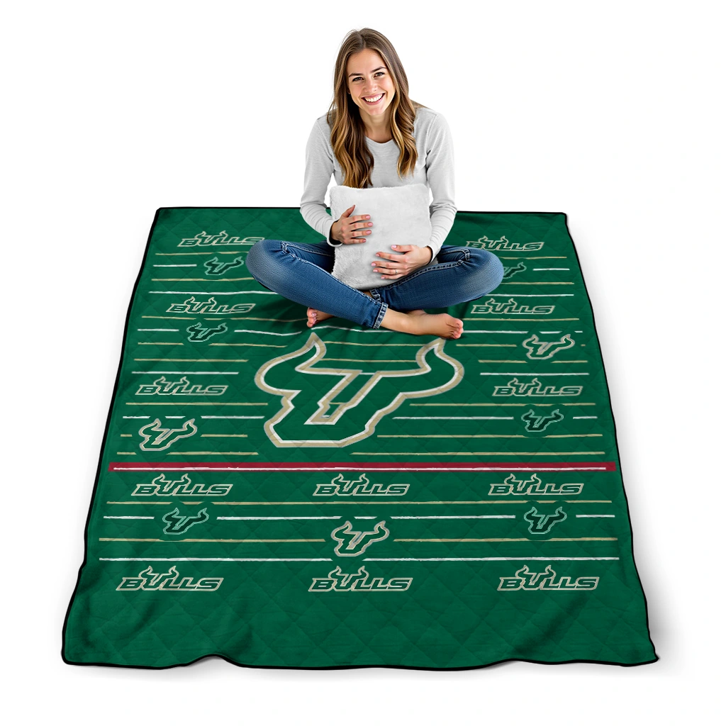The South Florida Bulls Handdrawn Stripes Green Quilt Blanket is more than a blanket—it’s everyday comfort, thoughtfully made. Crafted from premium quilting fabric with a soft microfiber touch, it offers a smooth hand-feel and lasting coziness. Layered quilting with a cotton-filled core provides adaptable warmth across seasons while maintaining a clean, tailored look on your bed or sofa.
