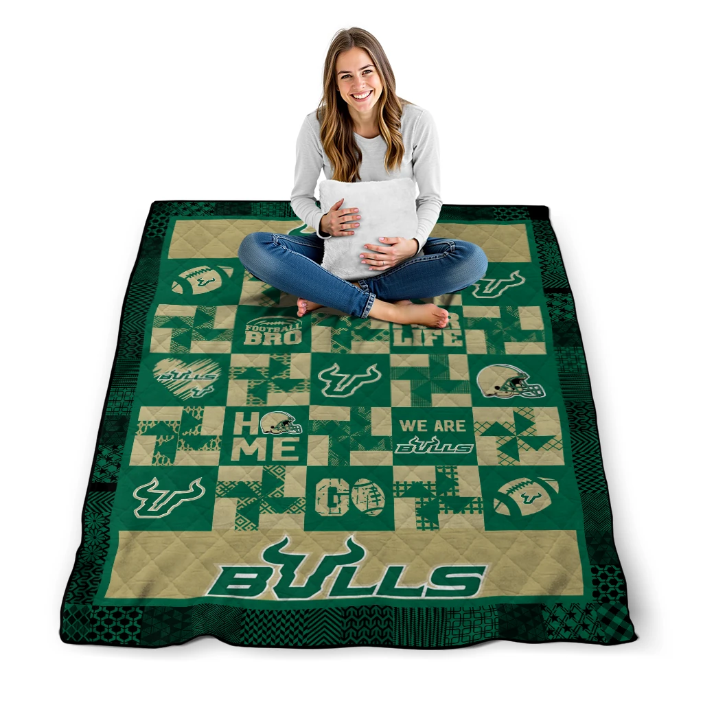 The South Florida Bulls Helmet Heart Green Quilt Blanket is more than a blanket—it’s everyday comfort, thoughtfully made. Crafted from premium quilting fabric with a soft microfiber touch, it offers a smooth hand-feel and lasting coziness. Layered quilting with a cotton-filled core provides adaptable warmth across seasons while maintaining a clean, tailored look on your bed or sofa.