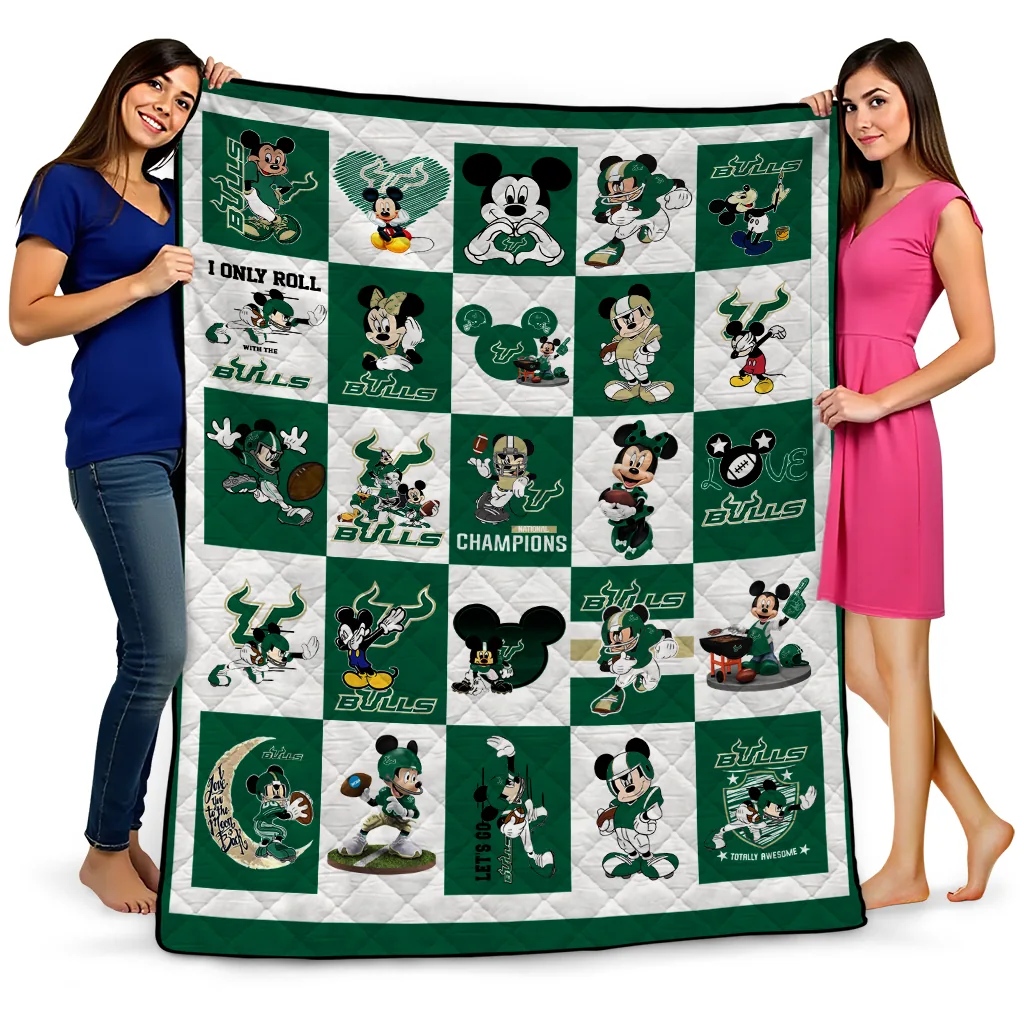 South Florida Bulls Mickey Mouse Motif Green White Quilt Blanket