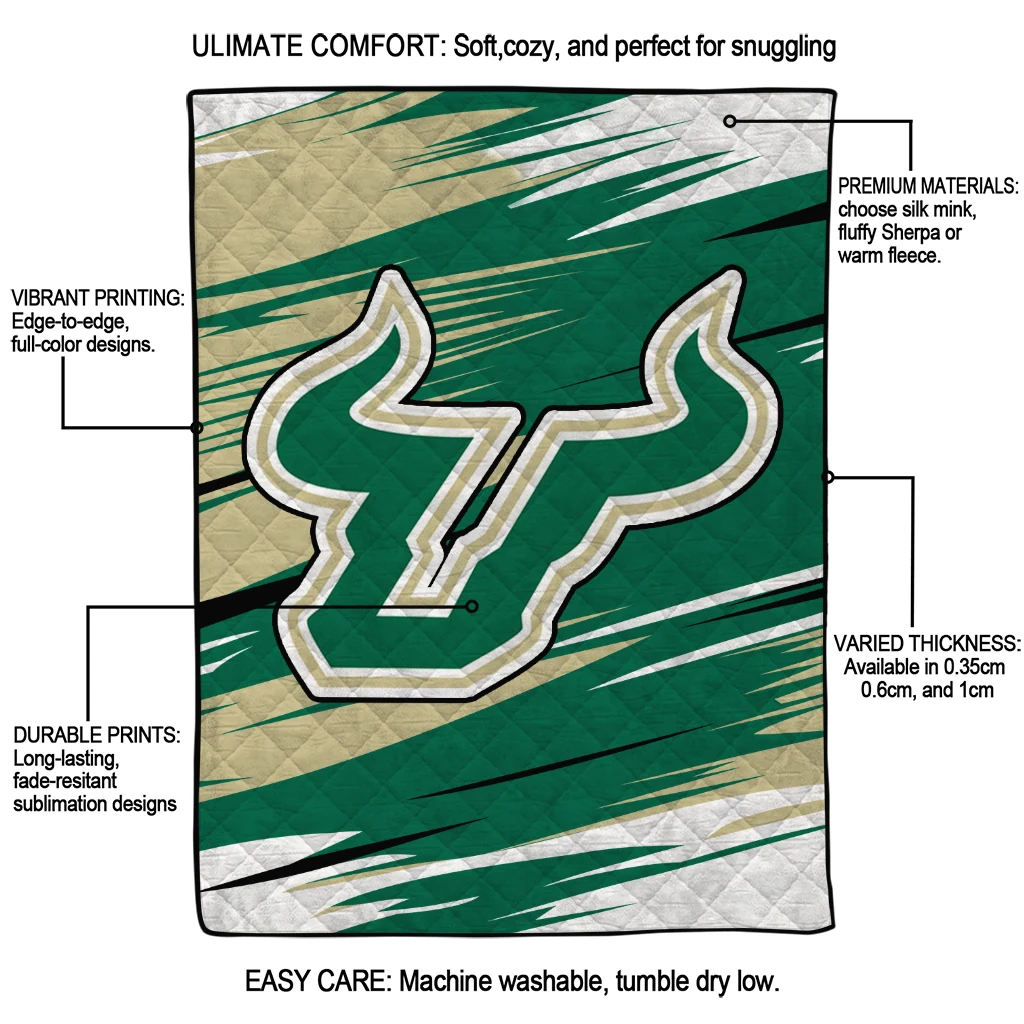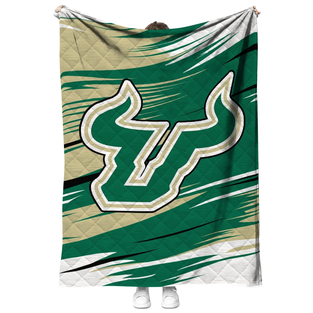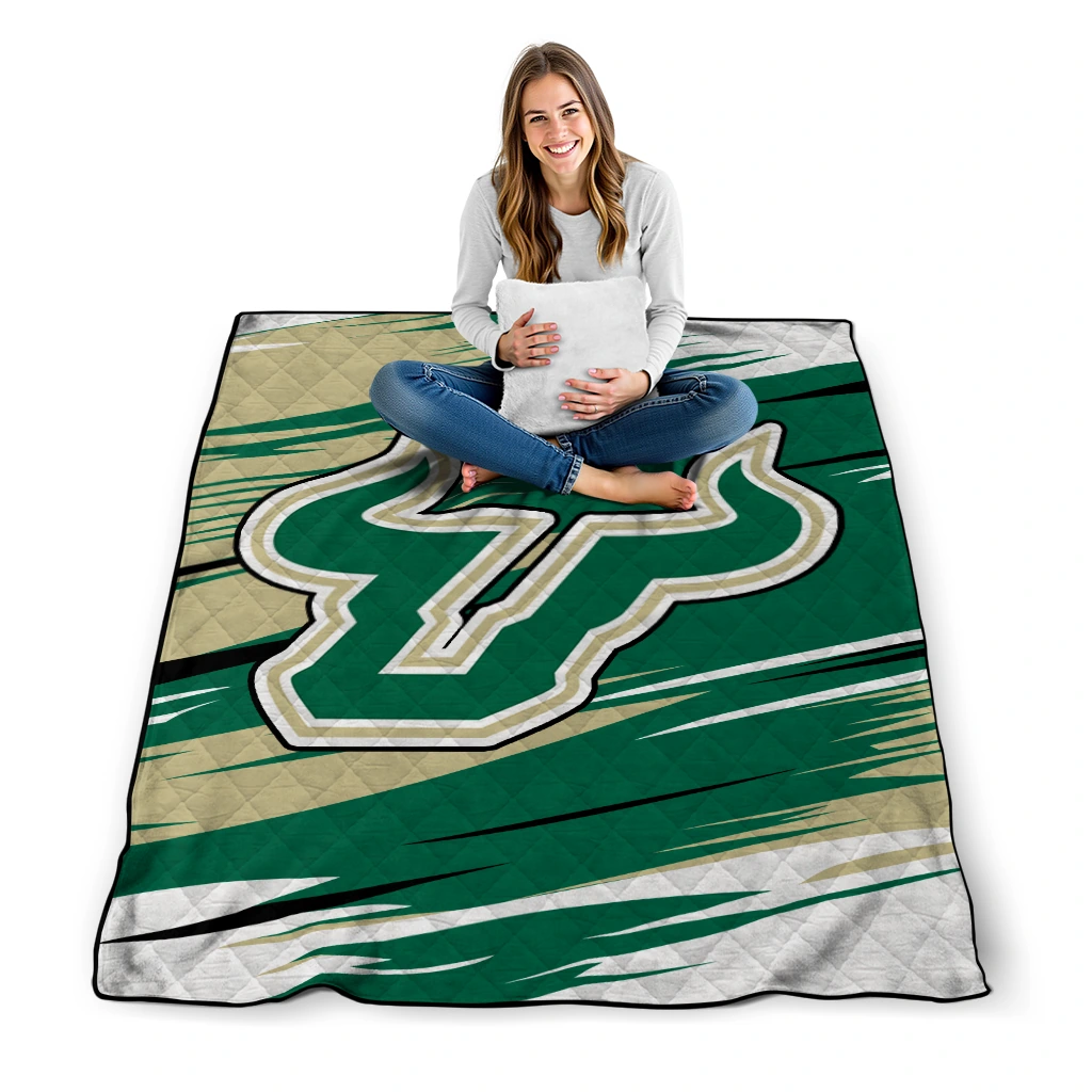 The South Florida Bulls Wild Lines Green White Quilt Blanket is more than a blanket—it’s everyday comfort, thoughtfully made. Crafted from premium quilting fabric with a soft microfiber touch, it offers a smooth hand-feel and lasting coziness. Layered quilting with a cotton-filled core provides adaptable warmth across seasons while maintaining a clean, tailored look on your bed or sofa.