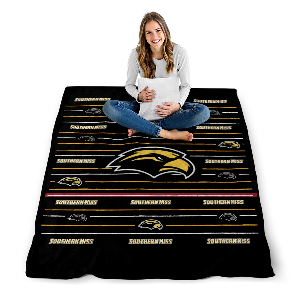 Southern Miss Golden Eagles Handdrawn Stripes Black Quilt Blanket