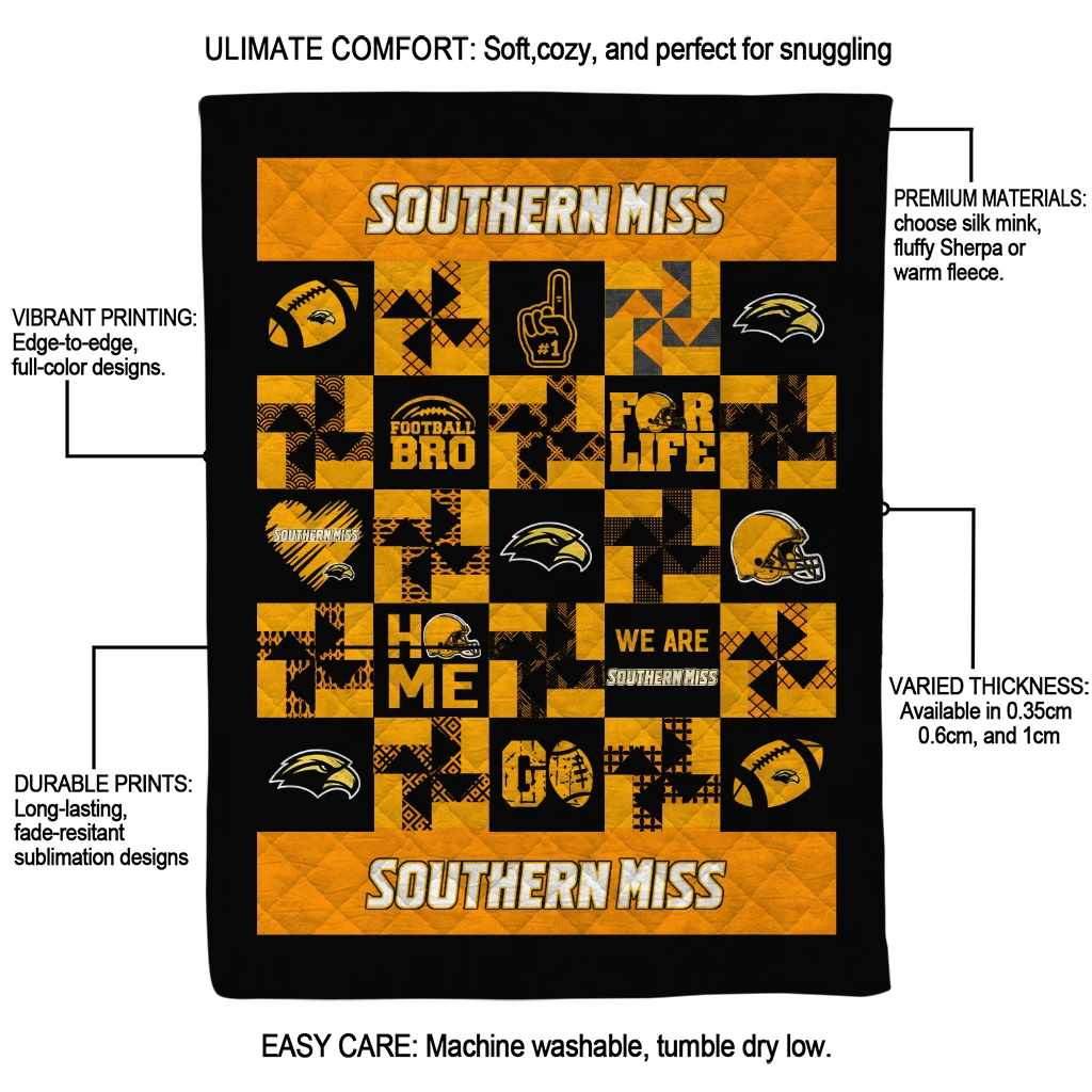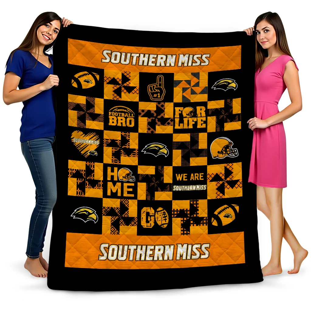 Southern Miss Golden Eagles Helmet Heart Black Quilt Blanket