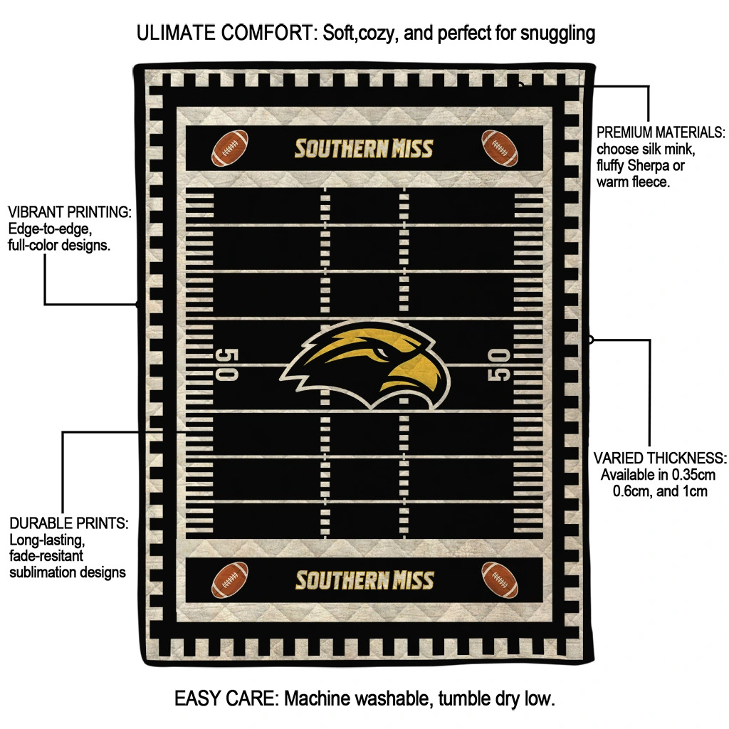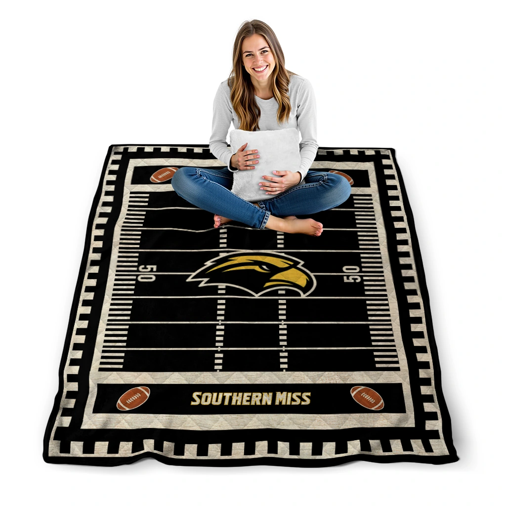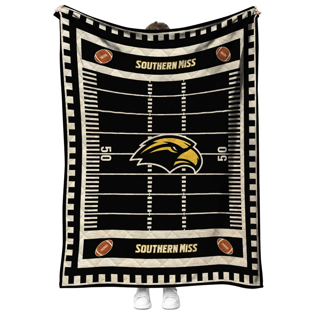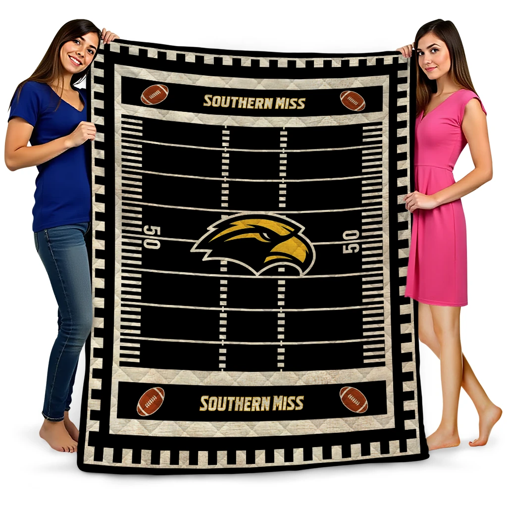Southern Miss Golden Eagles Mickey Player Black Quilt Blanket