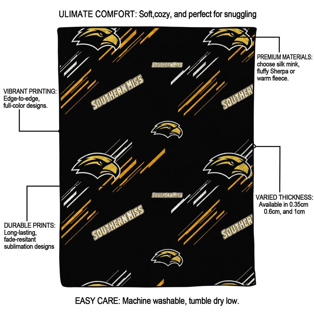 Wrap yourself in warmth and pride with the Southern Miss Golden Eagles Sketch Lines Black Quilt Blanket from the Southern Miss Golden Eagles Blankets collection at Yes That Blanket. Made from 100% premium quilting-weight polyester blended with a touch of microfiber, this quilt offers a smooth, soft finish you’ll love. Choose between two quilting styles—Stipple or Diagonal—and enjoy the comfort of a cotton-filled layer inside that adds extra coziness for every season. The border is available in classic black or white, giving your design a clean, timeless edge.