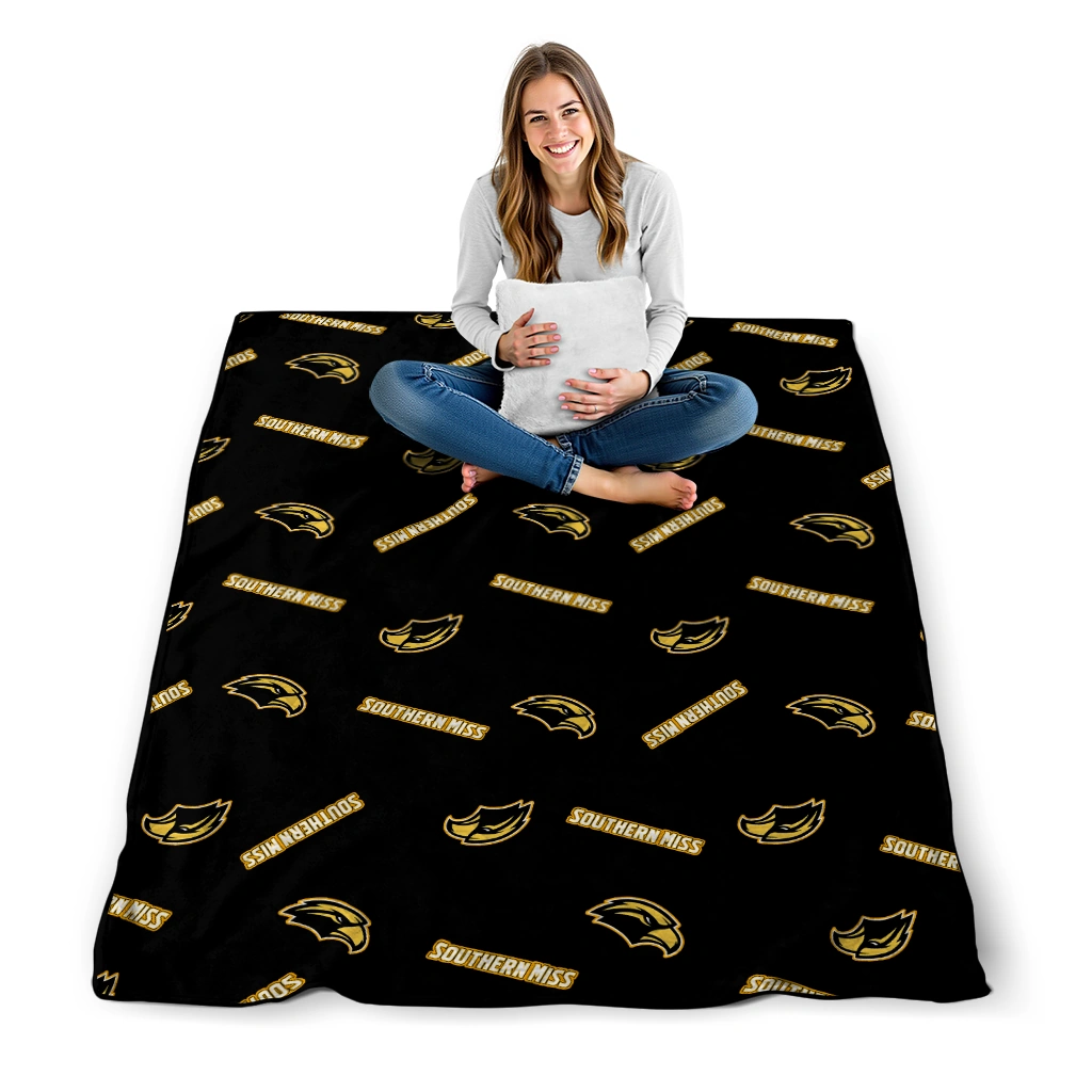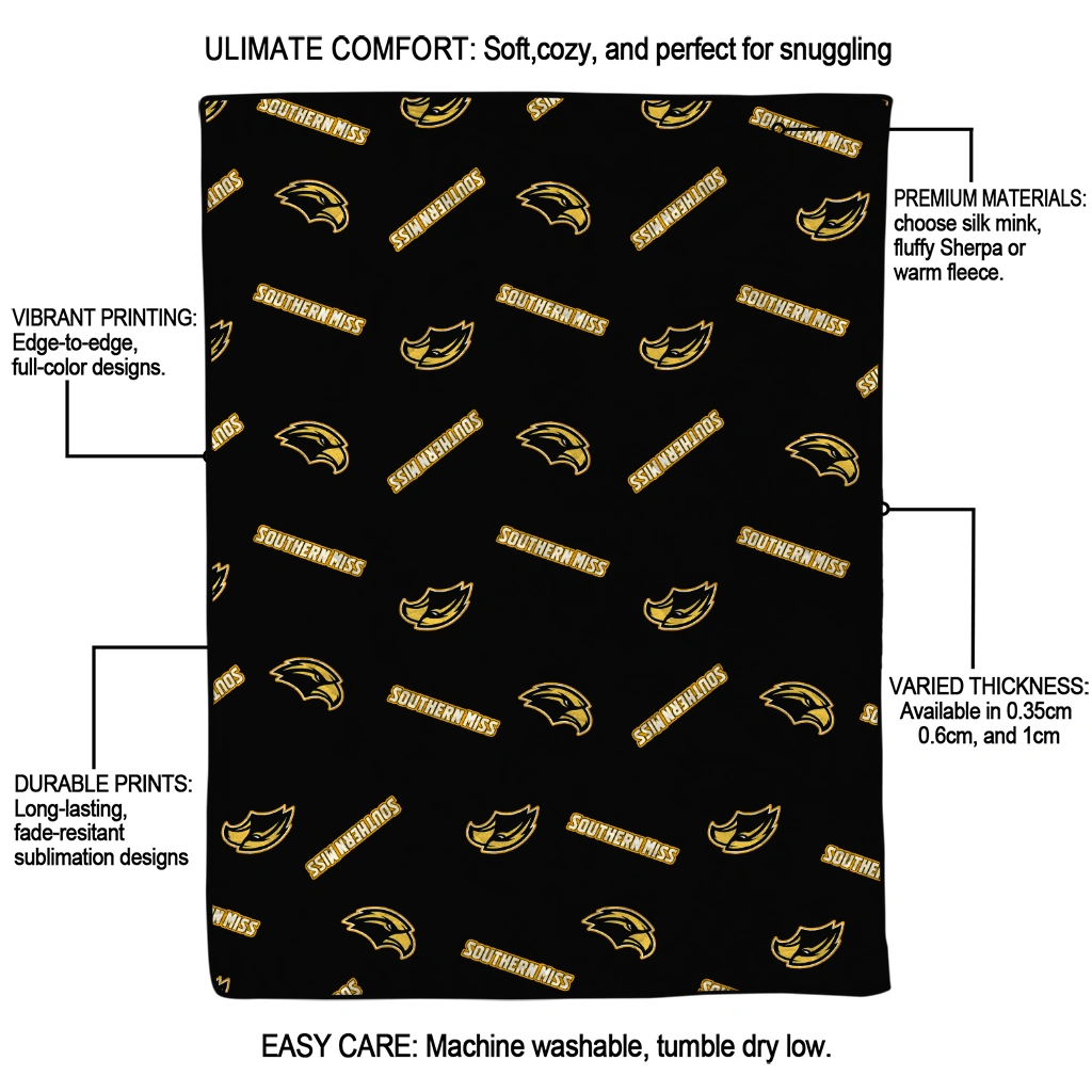 Southern Miss Golden Eagles Solid Classic Black Quilt Blanket