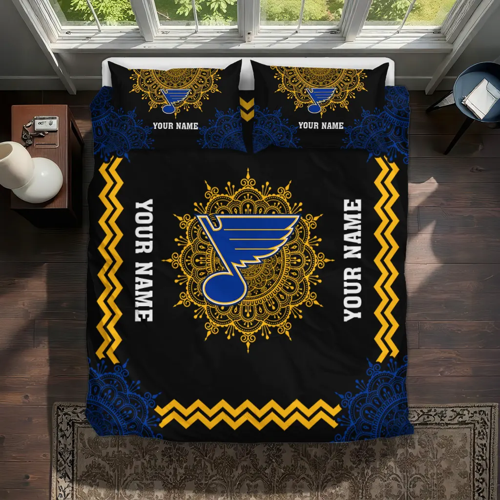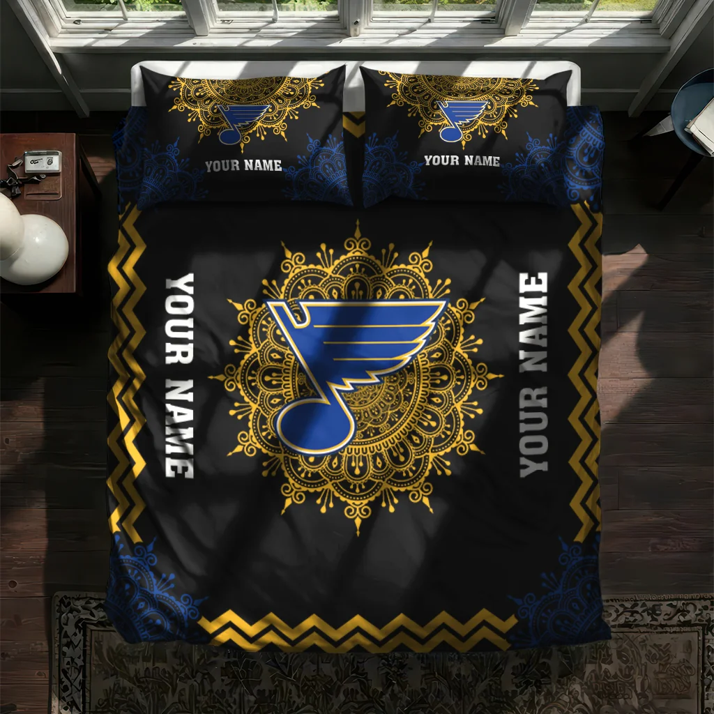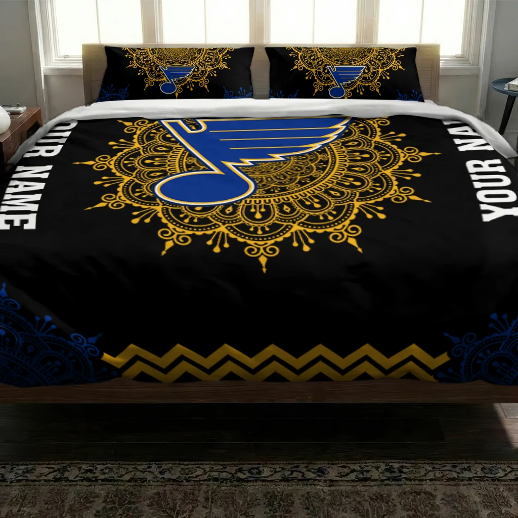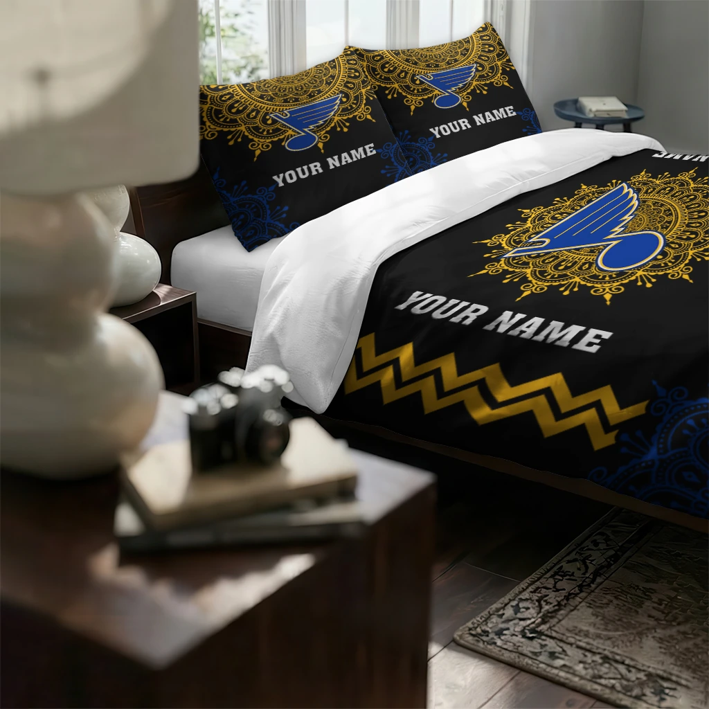 St. Louis Blues Bedding Set – Personalized Mandala Lacework Black Yellow