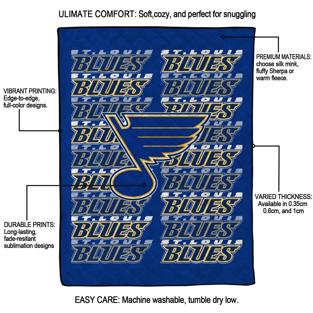 The St. Louis Blues Bold Red Blue Quilt Blanket is more than a blanket—it’s everyday comfort, thoughtfully made. Crafted from premium quilting fabric with a soft microfiber touch, it offers a smooth hand-feel and lasting coziness. Layered quilting with a cotton-filled core provides adaptable warmth across seasons while maintaining a clean, tailored look on your bed or sofa.