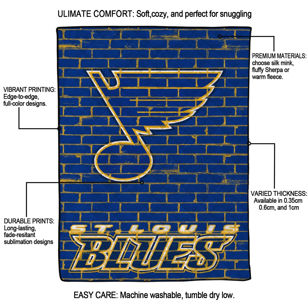 The St. Louis Blues Brick Grid Blue Quilt Blanket is more than a blanket—it’s everyday comfort, thoughtfully made. Crafted from premium quilting fabric with a soft microfiber touch, it offers a smooth hand-feel and lasting coziness. Layered quilting with a cotton-filled core provides adaptable warmth across seasons while maintaining a clean, tailored look on your bed or sofa.