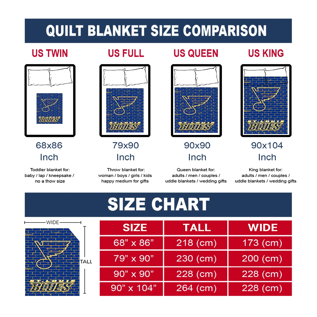 Wrap yourself in warmth and pride with the St. Louis Blues Brick Grid Blue Quilt Blanket from the St. Louis Blues Blankets collection at Yes That Blanket. Made from 100% premium quilting-weight polyester blended with a touch of microfiber, this quilt offers a smooth, soft finish you’ll love. Choose between two quilting styles—Stipple or Diagonal—and enjoy the comfort of a cotton-filled layer inside that adds extra coziness for every season. The border is available in classic black or white, giving your design a clean, timeless edge.