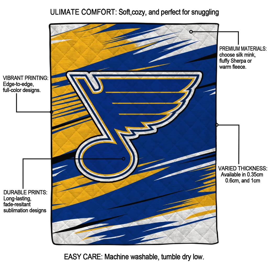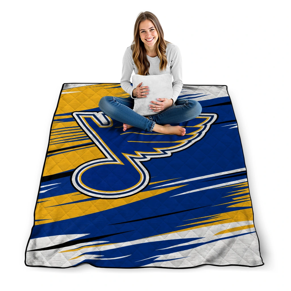 The St. Louis Blues Wild Lines Blue White Quilt Blanket is more than a blanket—it’s everyday comfort, thoughtfully made. Crafted from premium quilting fabric with a soft microfiber touch, it offers a smooth hand-feel and lasting coziness. Layered quilting with a cotton-filled core provides adaptable warmth across seasons while maintaining a clean, tailored look on your bed or sofa.