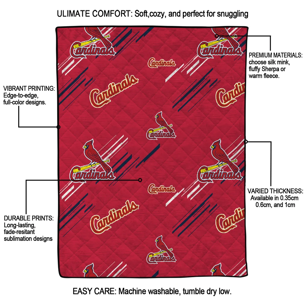 Wrap yourself in warmth and pride with the St. Louis Cardinals Sketch Lines Red Quilt Blanket from the St. Louis Cardinals Blankets collection at Yes That Blanket. Made from 100% premium quilting-weight polyester blended with a touch of microfiber, this quilt offers a smooth, soft finish you’ll love. Choose between two quilting styles—Stipple or Diagonal—and enjoy the comfort of a cotton-filled layer inside that adds extra coziness for every season. The border is available in classic black or white, giving your design a clean, timeless edge.