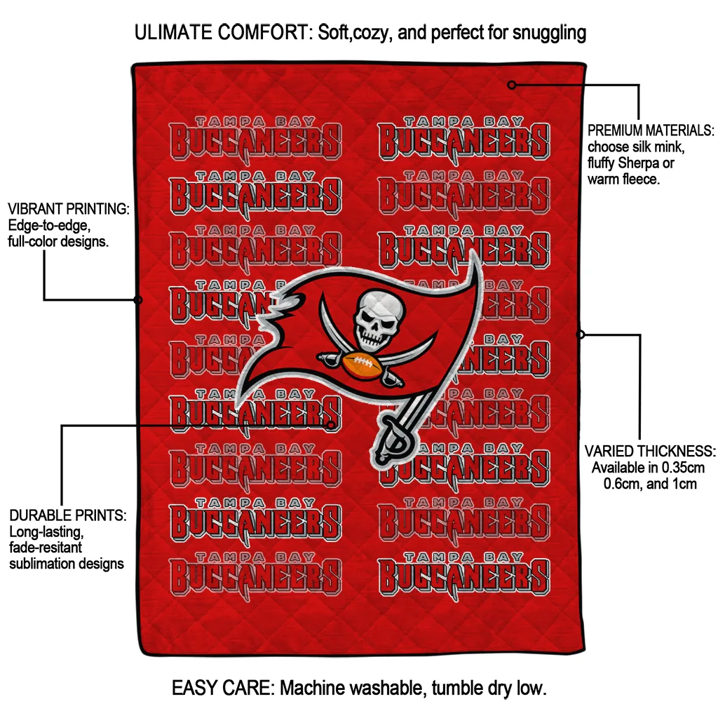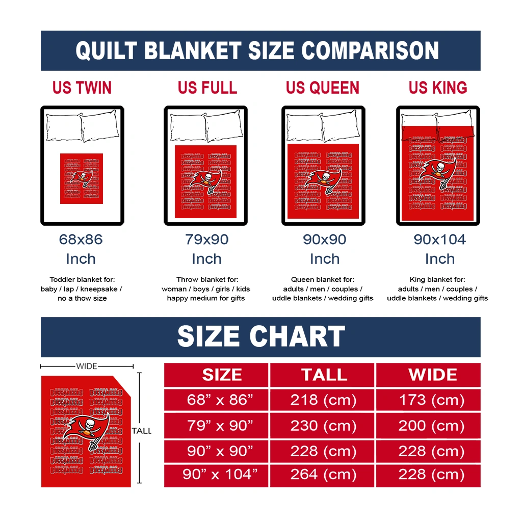Wrap yourself in warmth and pride with the Tampa Bay Buccaneers Bold Red Quilt Blanket from the Tampa Bay Buccaneers Blankets collection at Yes That Blanket. Made from 100% premium quilting-weight polyester blended with a touch of microfiber, this quilt offers a smooth, soft finish you’ll love. Choose between two quilting styles—Stipple or Diagonal—and enjoy the comfort of a cotton-filled layer inside that adds extra coziness for every season. The border is available in classic black or white, giving your design a clean, timeless edge.