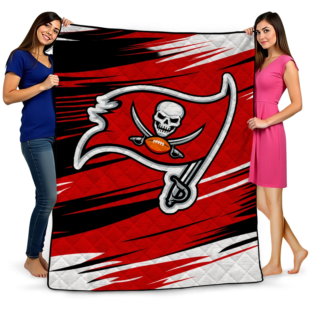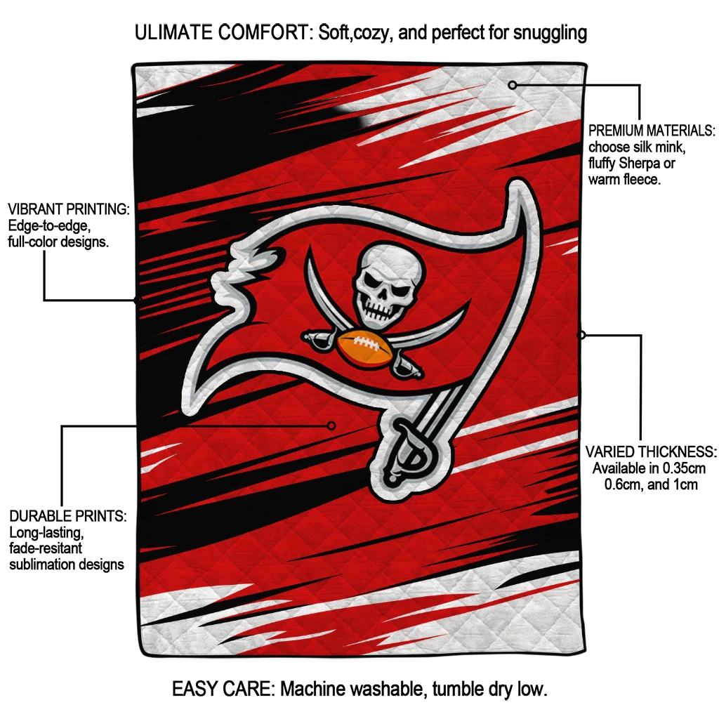 Wrap yourself in warmth and pride with the Tampa Bay Buccaneers Wild Lines Red White Quilt Blanket from the Tampa Bay Buccaneers Blankets collection at Yes That Blanket. Made from 100% premium quilting-weight polyester blended with a touch of microfiber, this quilt offers a smooth, soft finish you’ll love. Choose between two quilting styles—Stipple or Diagonal—and enjoy the comfort of a cotton-filled layer inside that adds extra coziness for every season. The border is available in classic black or white, giving your design a clean, timeless edge.