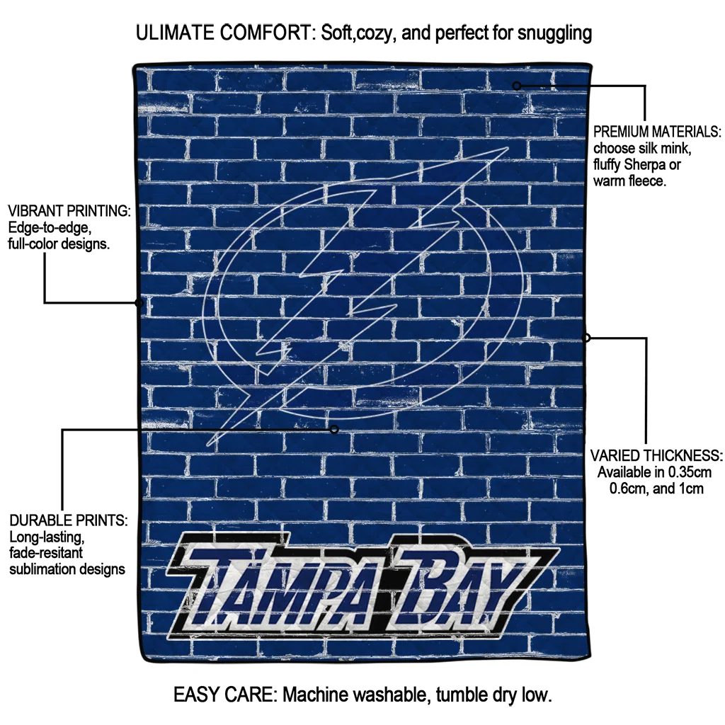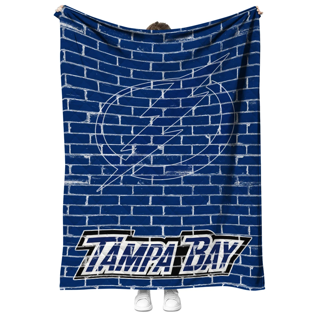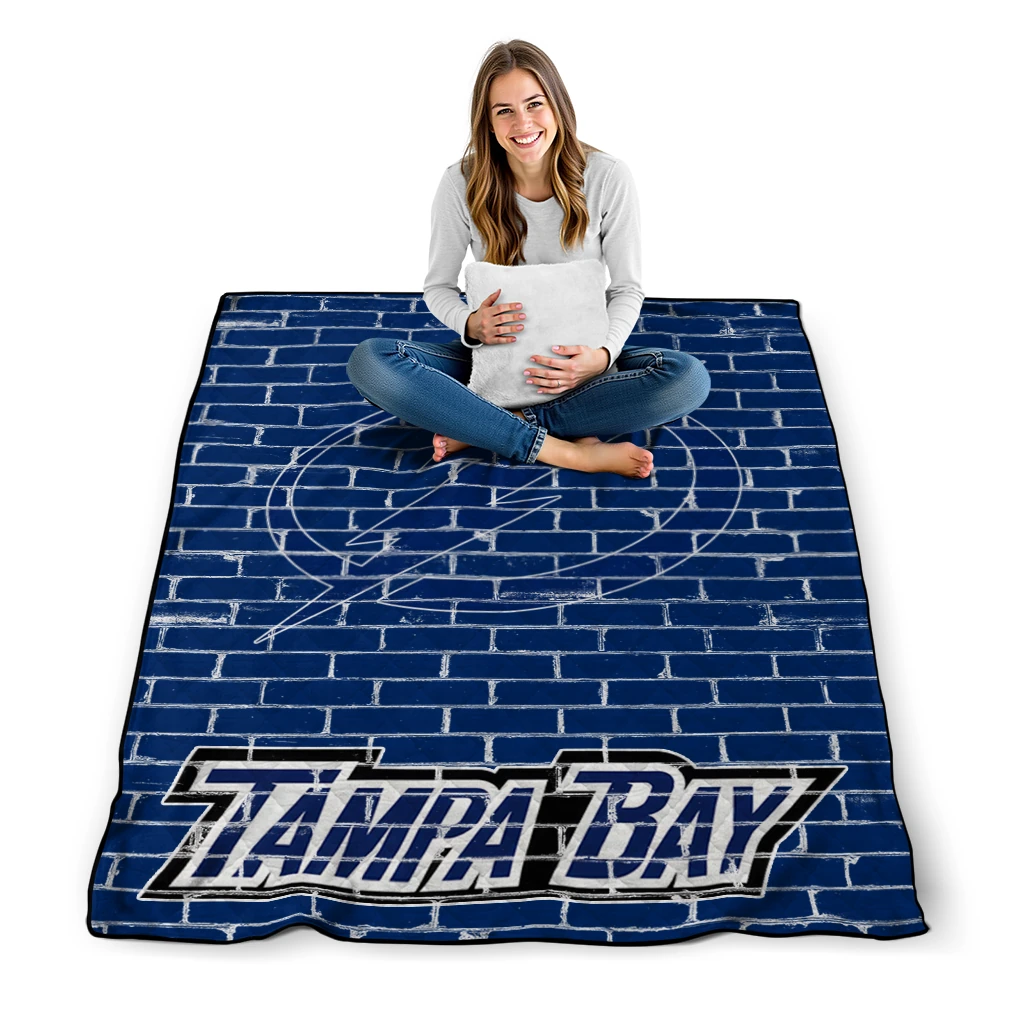 Wrap yourself in warmth and pride with the Tampa Bay Lightning Brick Grid Blue Quilt Blanket from the Tampa Bay Lightning Blankets collection at Yes That Blanket. Made from 100% premium quilting-weight polyester blended with a touch of microfiber, this quilt offers a smooth, soft finish you’ll love. Choose between two quilting styles—Stipple or Diagonal—and enjoy the comfort of a cotton-filled layer inside that adds extra coziness for every season. The border is available in classic black or white, giving your design a clean, timeless edge.