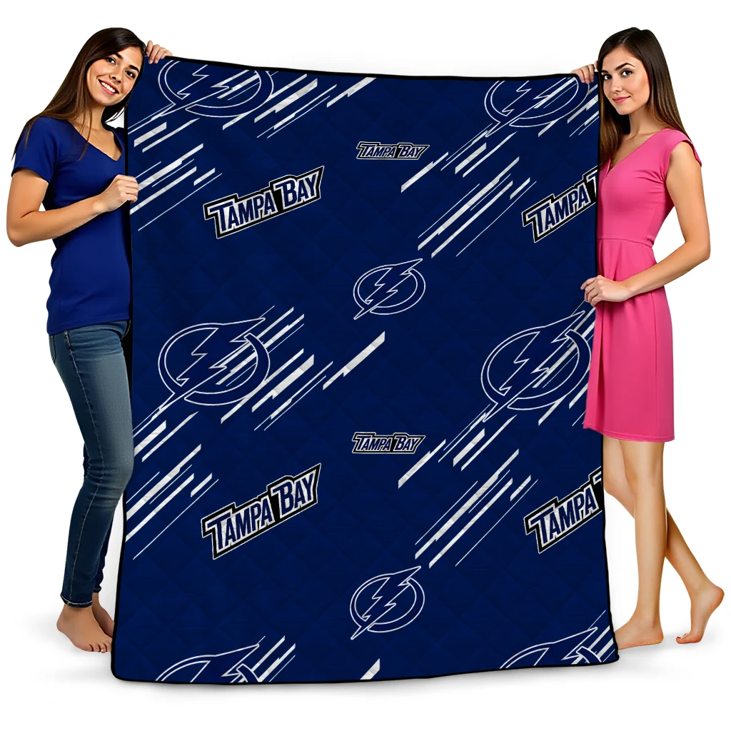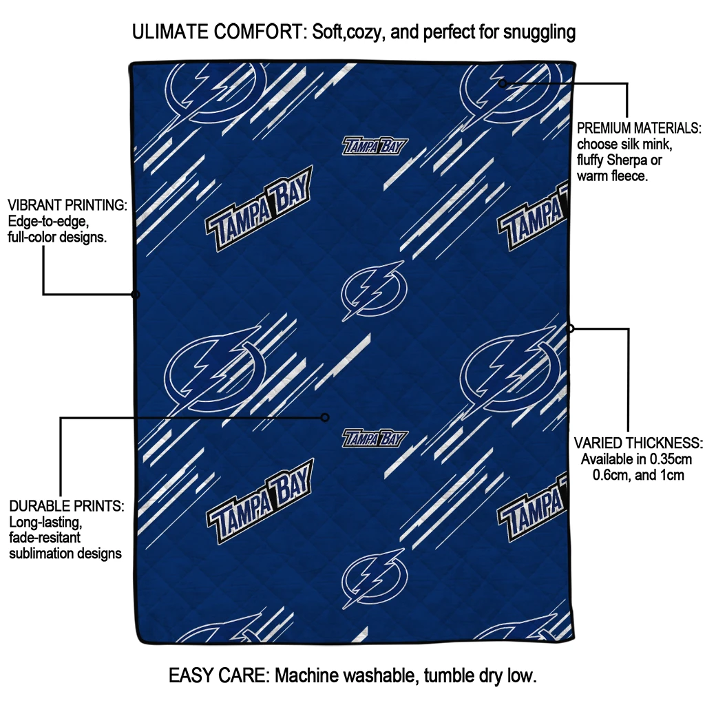 Tampa Bay Lightning Sketch Lines Blue Quilt Blanket