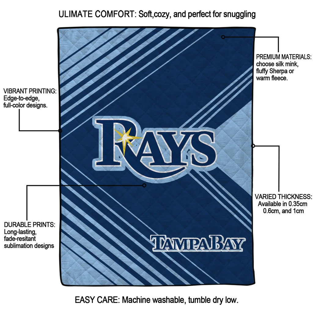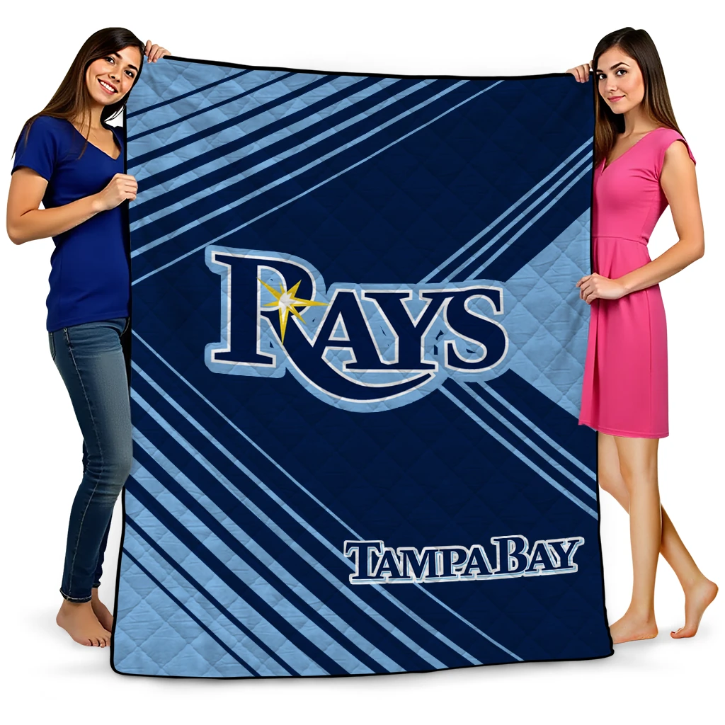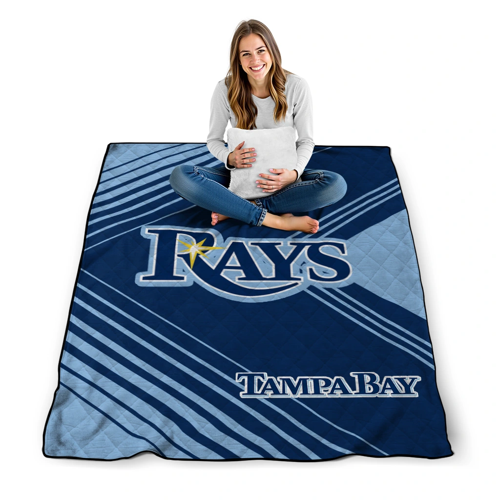 Wrap yourself in warmth and pride with the Tampa Bay Rays Arrow Layers Navy Quilt Blanket from the Tampa Bay Rays Blankets collection at Yes That Blanket. Made from 100% premium quilting-weight polyester blended with a touch of microfiber, this quilt offers a smooth, soft finish you’ll love. Choose between two quilting styles—Stipple or Diagonal—and enjoy the comfort of a cotton-filled layer inside that adds extra coziness for every season. The border is available in classic black or white, giving your design a clean, timeless edge.