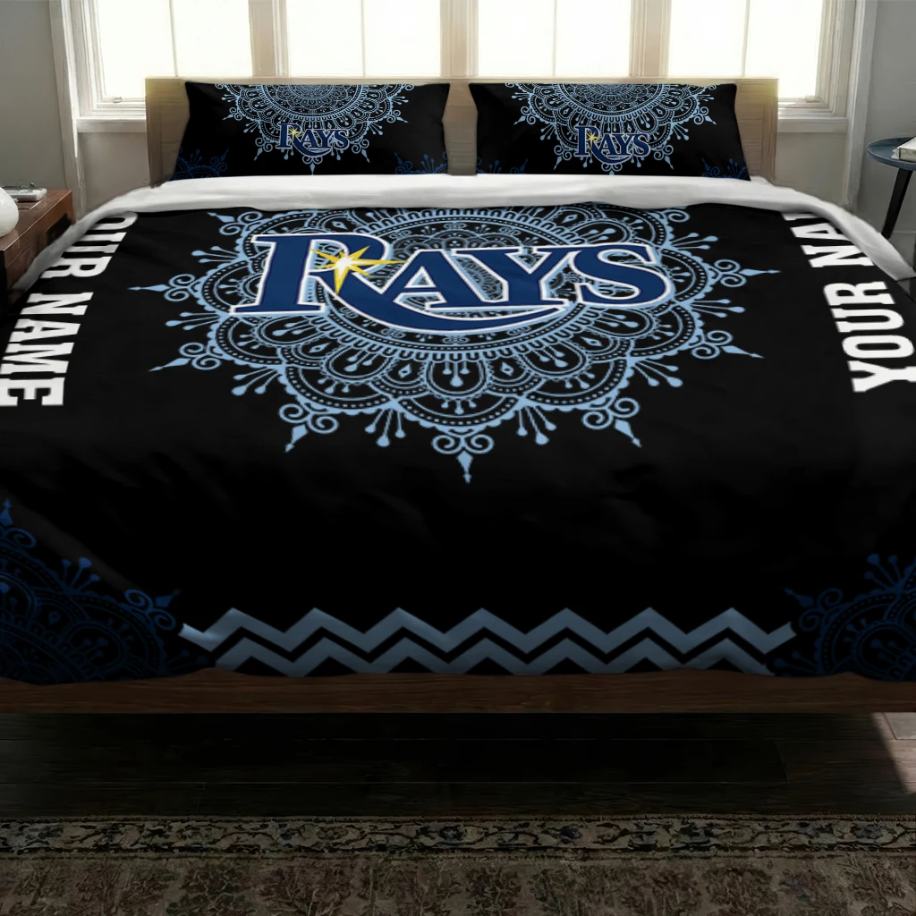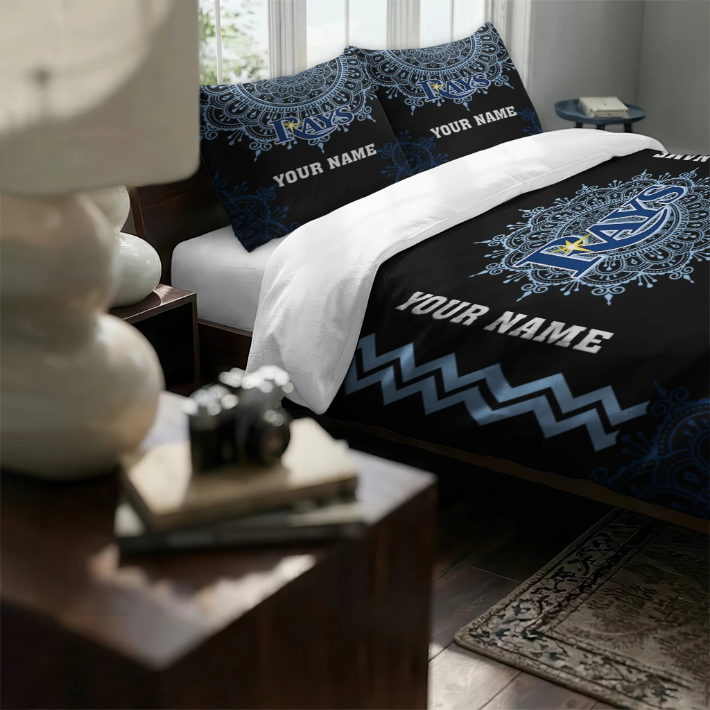 Tampa Bay Rays Bedding Set – Customized Mandala Lacework Black Blue