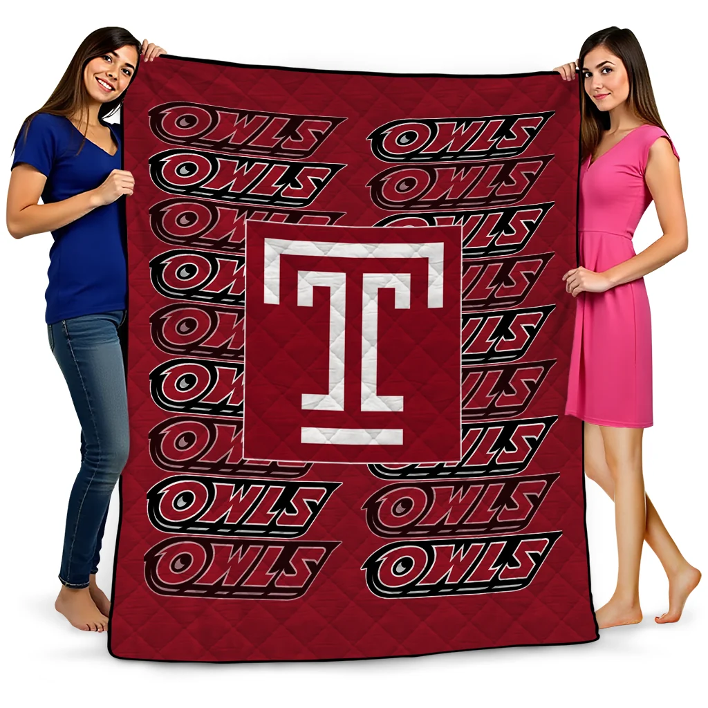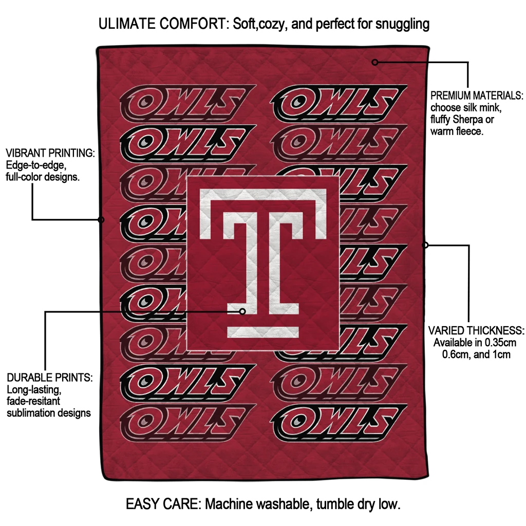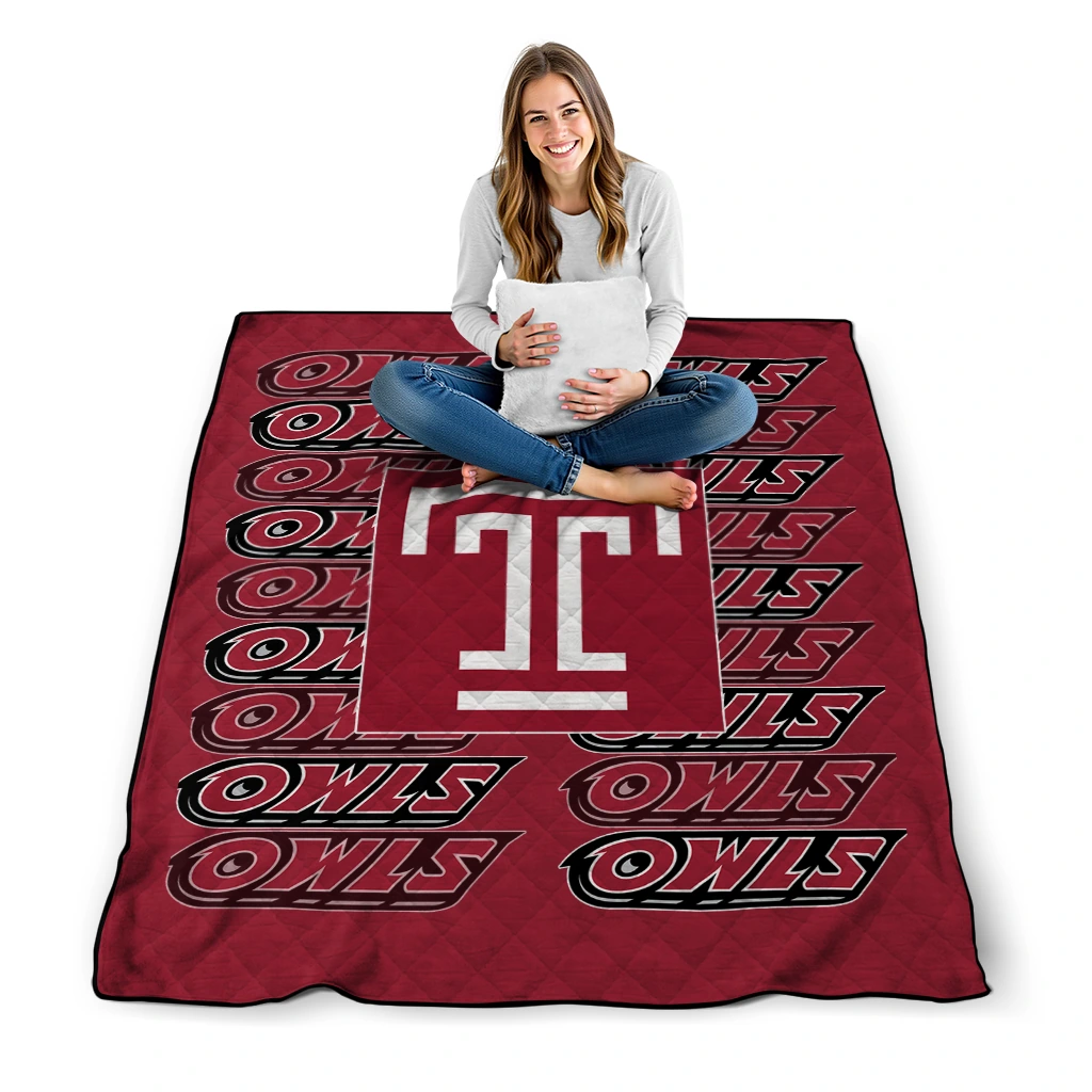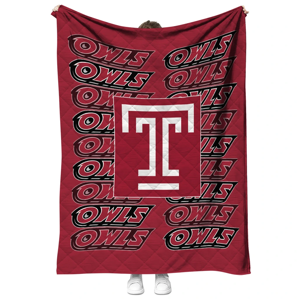 Wrap yourself in warmth and pride with the Temple Owls Bold Red Quilt Blanket from the Temple Owls Blankets collection at Yes That Blanket. Made from 100% premium quilting-weight polyester blended with a touch of microfiber, this quilt offers a smooth, soft finish you’ll love. Choose between two quilting styles—Stipple or Diagonal—and enjoy the comfort of a cotton-filled layer inside that adds extra coziness for every season. The border is available in classic black or white, giving your design a clean, timeless edge.