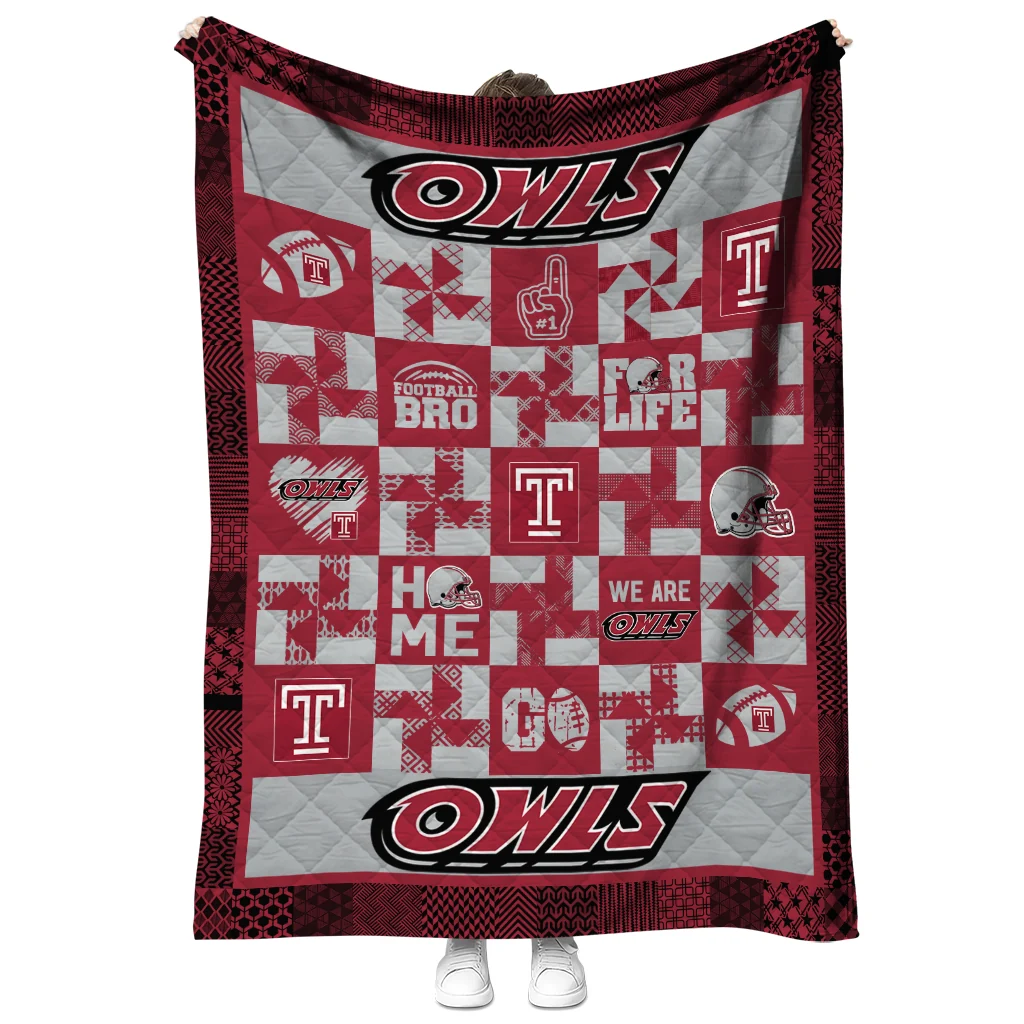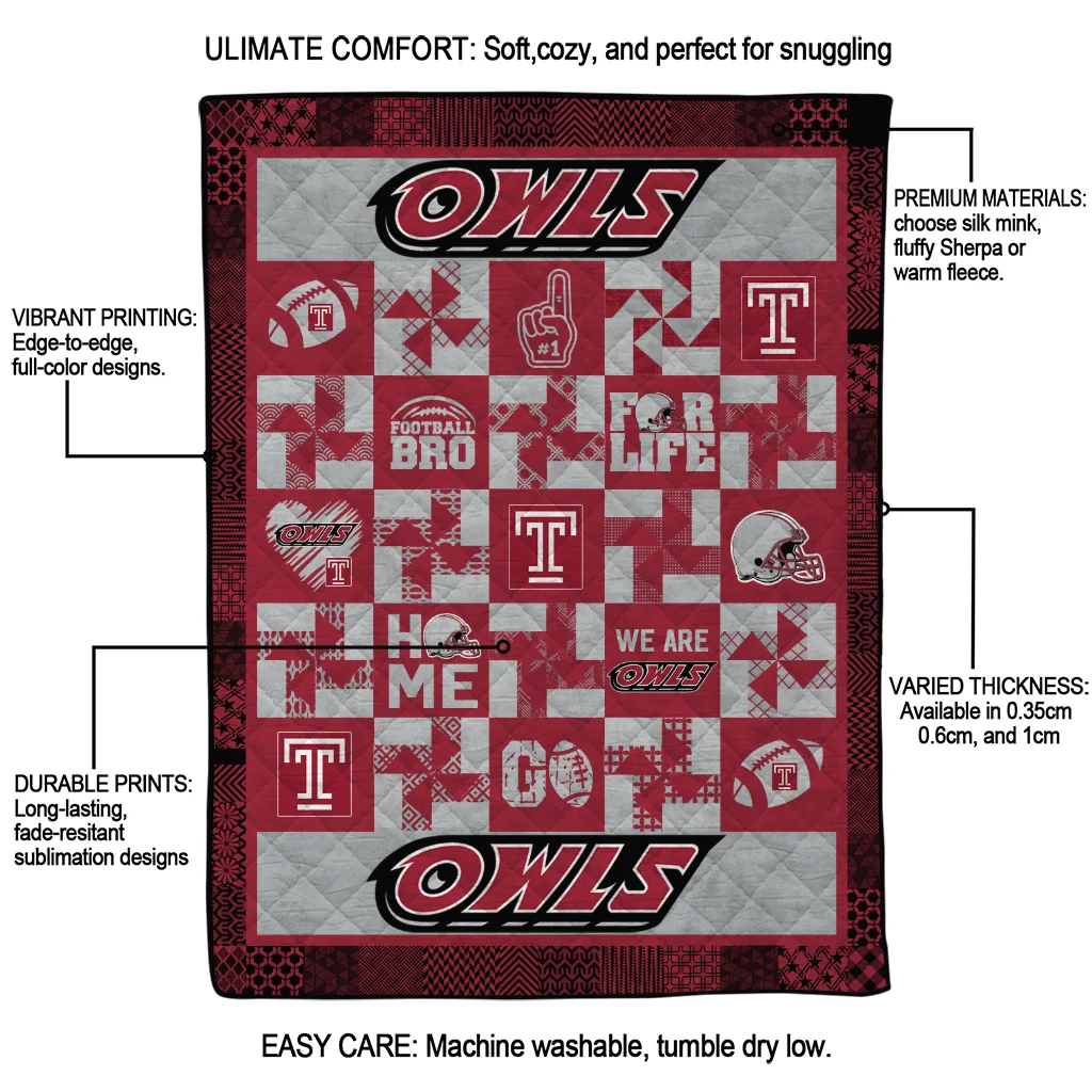 Wrap yourself in warmth and pride with the Temple Owls Helmet Heart Red Quilt Blanket from the Temple Owls Blankets collection at Yes That Blanket. Made from 100% premium quilting-weight polyester blended with a touch of microfiber, this quilt offers a smooth, soft finish you’ll love. Choose between two quilting styles—Stipple or Diagonal—and enjoy the comfort of a cotton-filled layer inside that adds extra coziness for every season. The border is available in classic black or white, giving your design a clean, timeless edge.