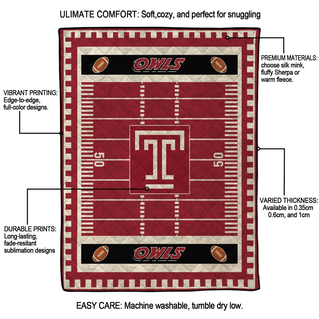 Wrap yourself in warmth and pride with the Temple Owls Mickey Player Red Quilt Blanket from the Temple Owls Blankets collection at Yes That Blanket. Made from 100% premium quilting-weight polyester blended with a touch of microfiber, this quilt offers a smooth, soft finish you’ll love. Choose between two quilting styles—Stipple or Diagonal—and enjoy the comfort of a cotton-filled layer inside that adds extra coziness for every season. The border is available in classic black or white, giving your design a clean, timeless edge.