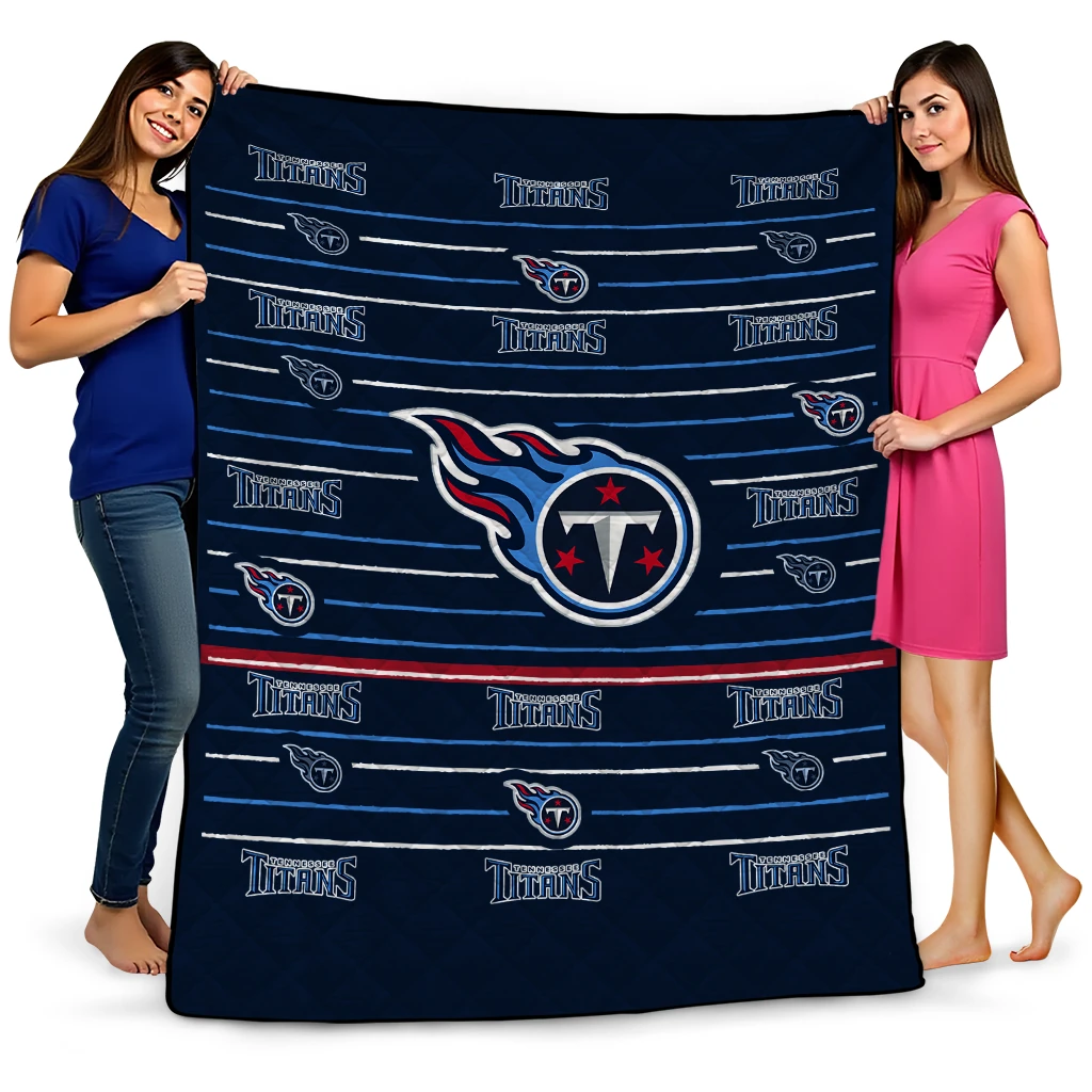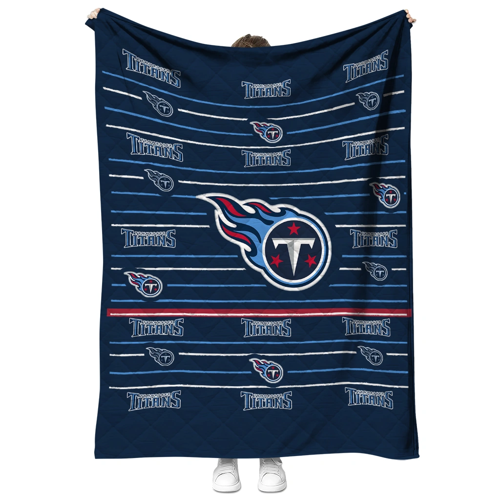 Wrap yourself in warmth and pride with the Tennessee Titans Handdrawn Stripes Navy Quilt Blanket from the Tennessee Titans Blankets collection at Yes That Blanket. Made from 100% premium quilting-weight polyester blended with a touch of microfiber, this quilt offers a smooth, soft finish you’ll love. Choose between two quilting styles—Stipple or Diagonal—and enjoy the comfort of a cotton-filled layer inside that adds extra coziness for every season. The border is available in classic black or white, giving your design a clean, timeless edge.