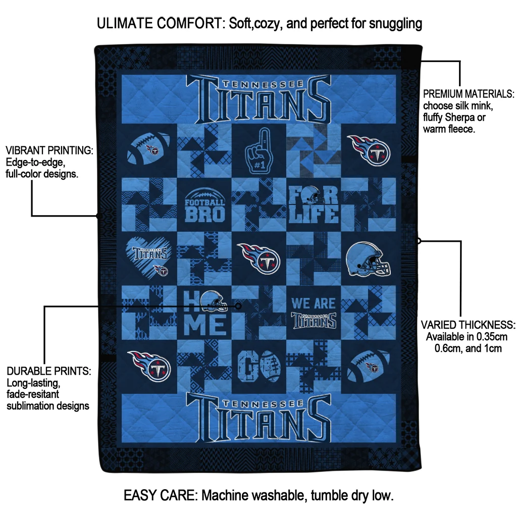 The Tennessee Titans Helmet Heart Navy Quilt Blanket is more than a blanket—it’s everyday comfort, thoughtfully made. Crafted from premium quilting fabric with a soft microfiber touch, it offers a smooth hand-feel and lasting coziness. Layered quilting with a cotton-filled core provides adaptable warmth across seasons while maintaining a clean, tailored look on your bed or sofa.