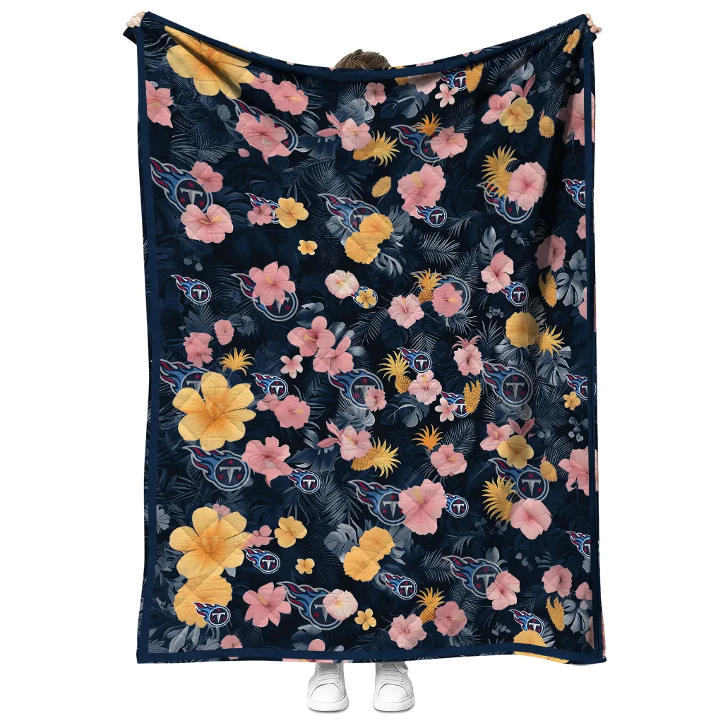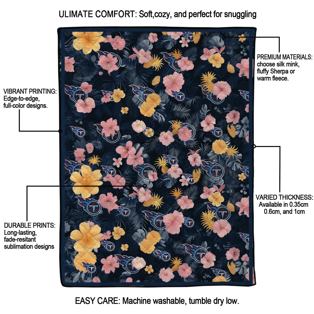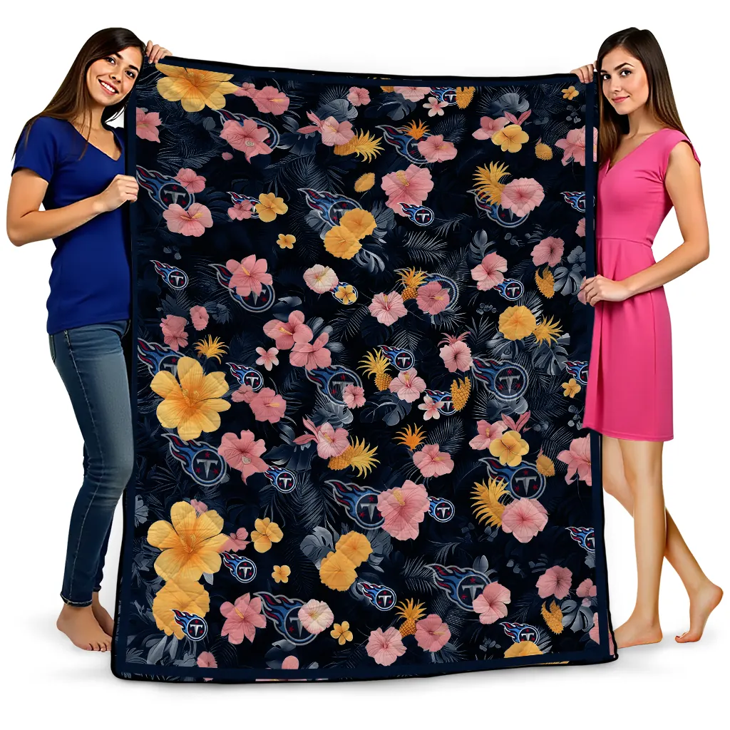 Tennessee Titans Hibiscus Foliage Navy Quilt Blanket