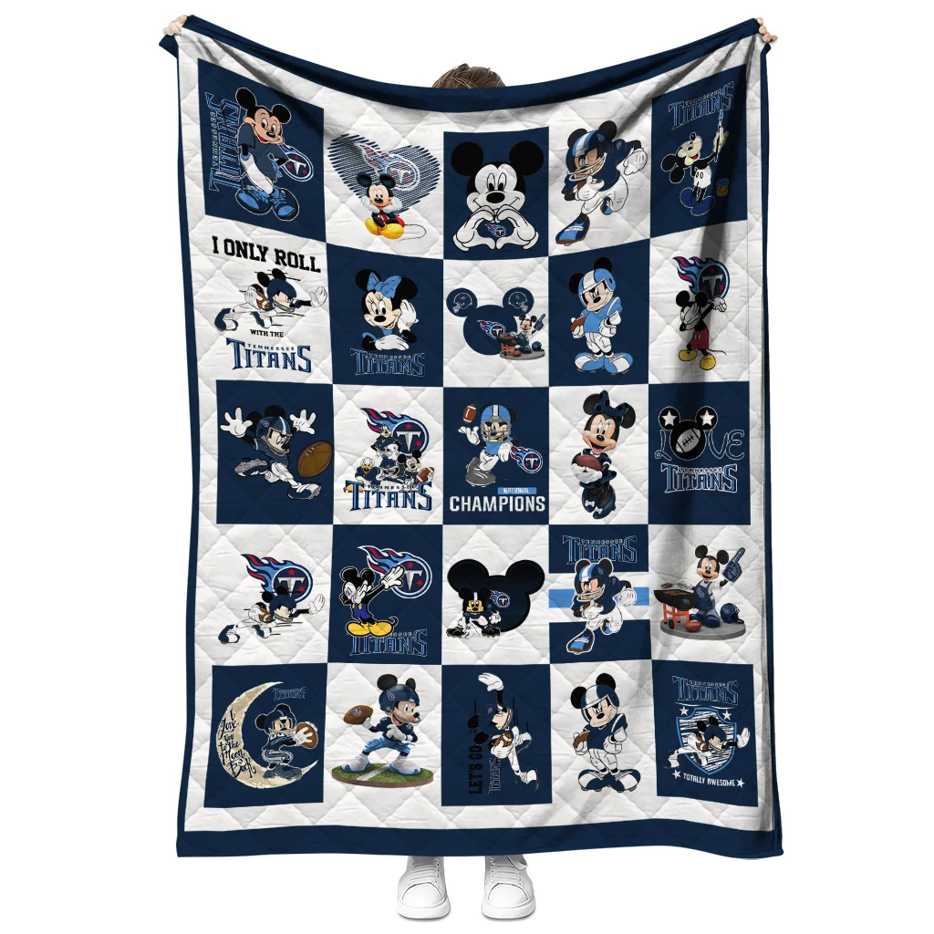 Tennessee Titans Mickey Pattern Navy White Quilt Blanket