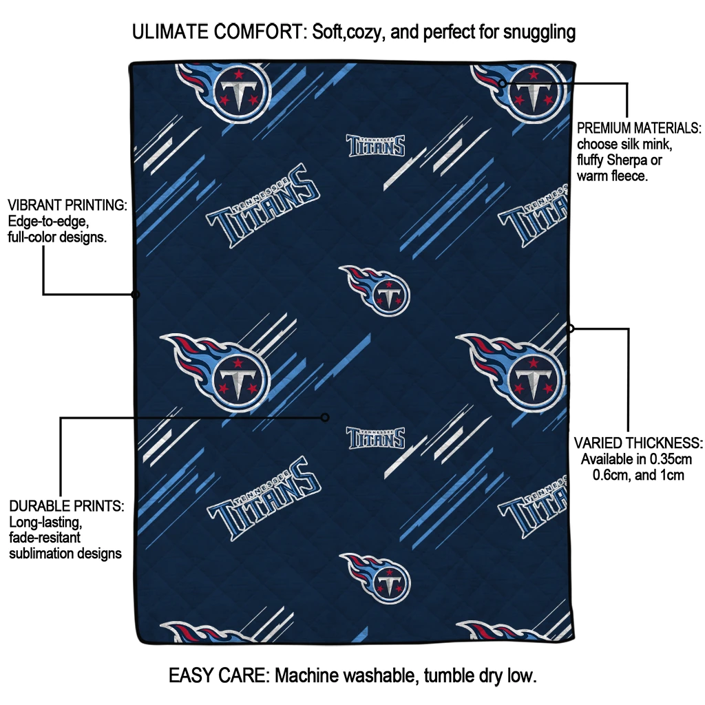 Wrap yourself in warmth and pride with the Tennessee Titans Sketch Lines Navy Quilt Blanket from the Tennessee Titans Blankets collection at Yes That Blanket. Made from 100% premium quilting-weight polyester blended with a touch of microfiber, this quilt offers a smooth, soft finish you’ll love. Choose between two quilting styles—Stipple or Diagonal—and enjoy the comfort of a cotton-filled layer inside that adds extra coziness for every season. The border is available in classic black or white, giving your design a clean, timeless edge.